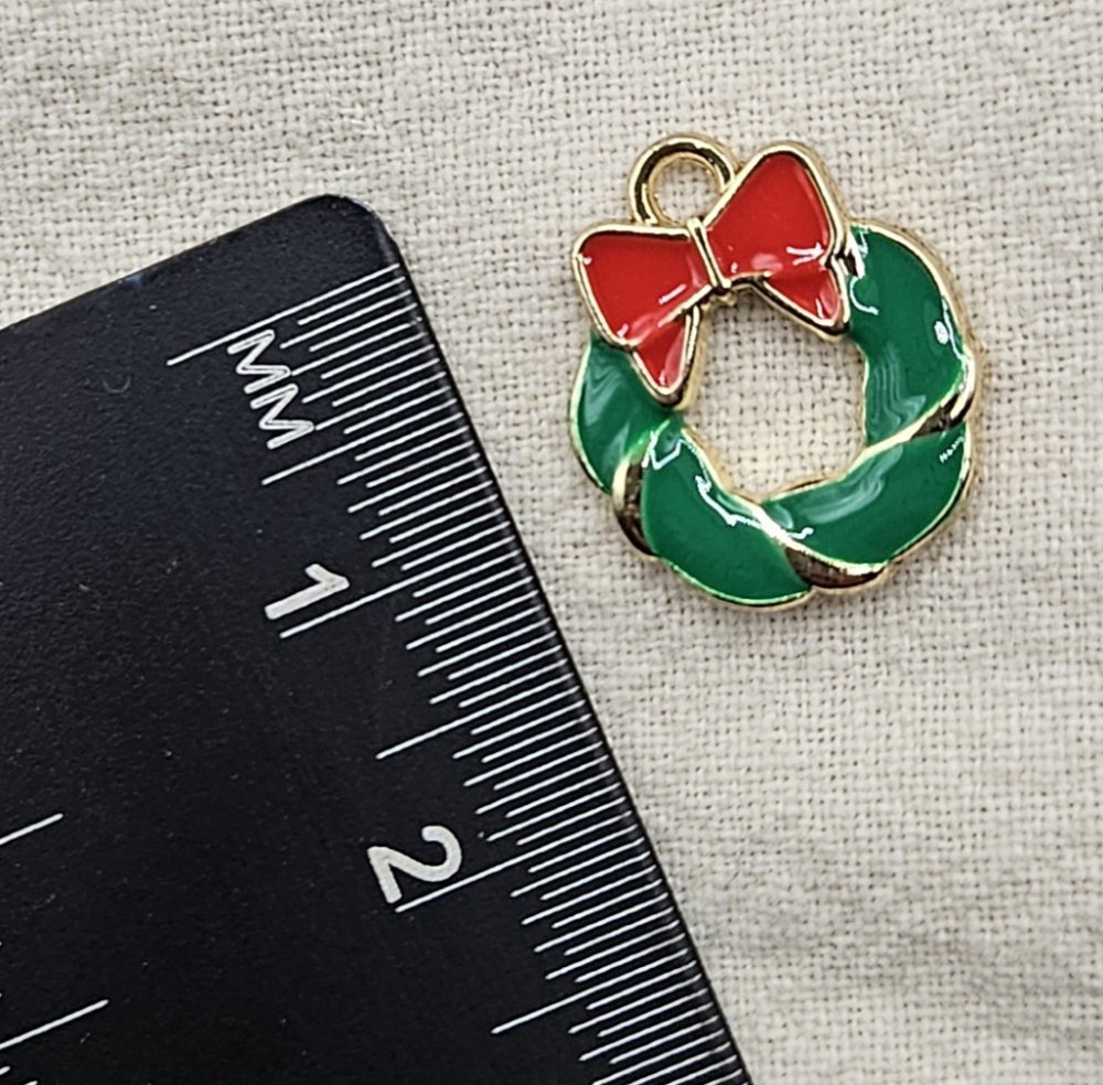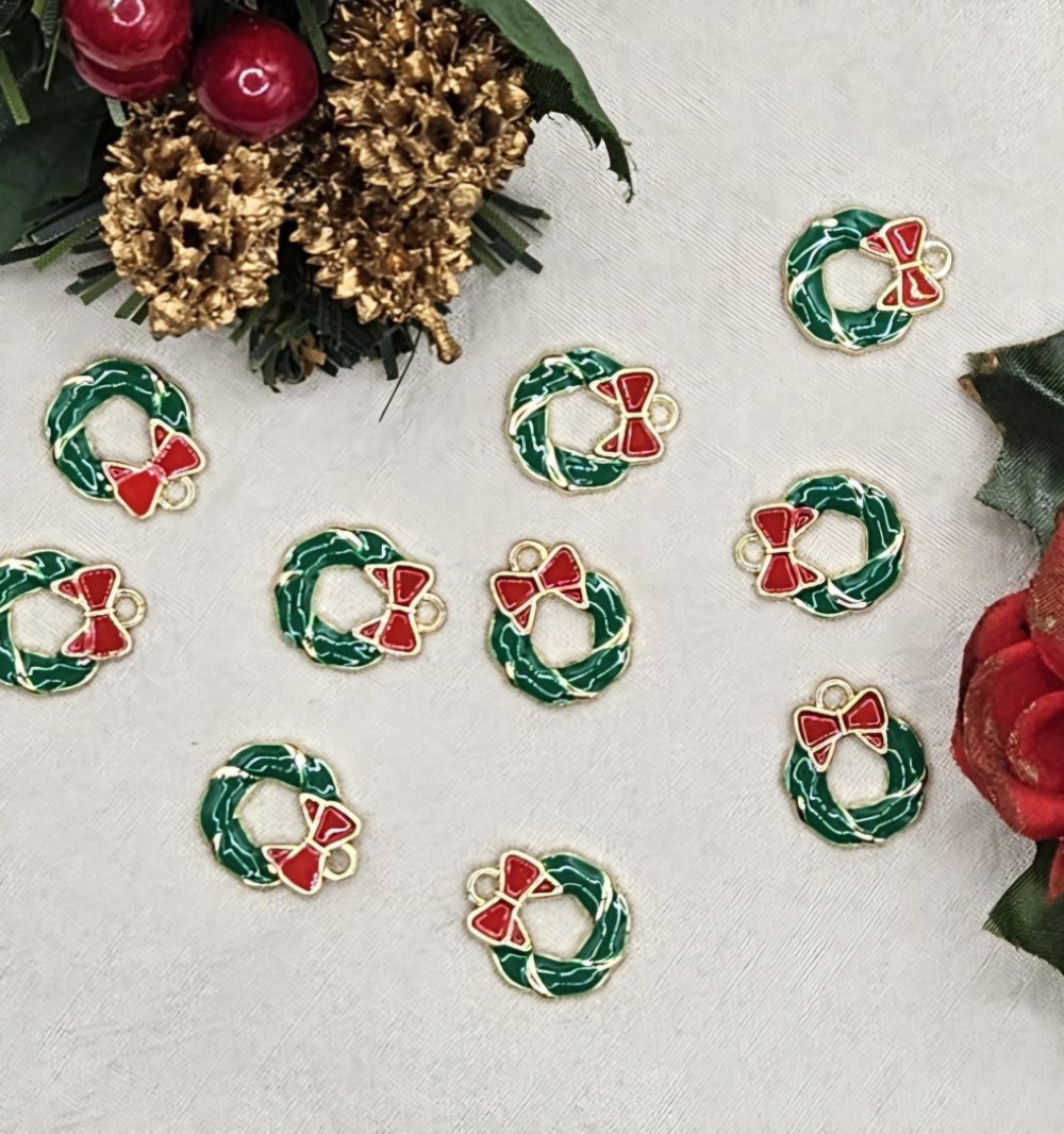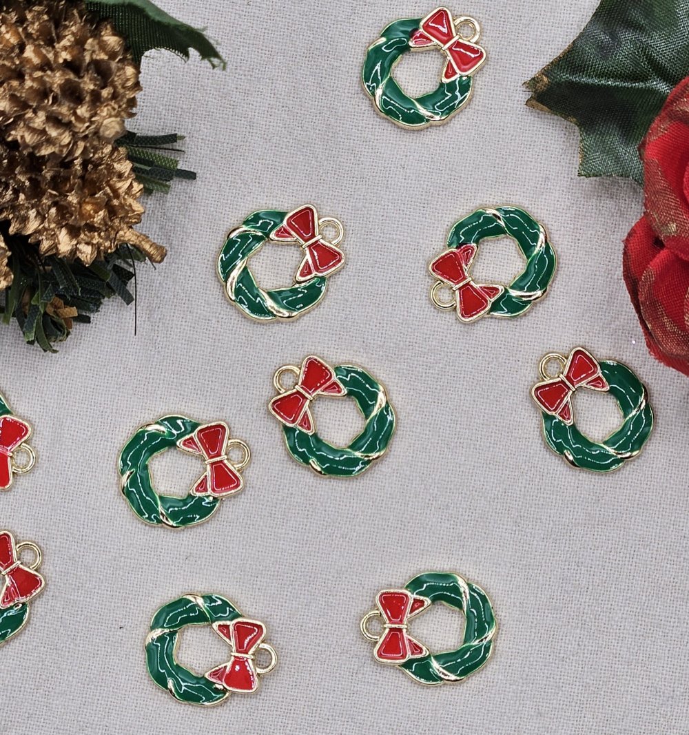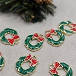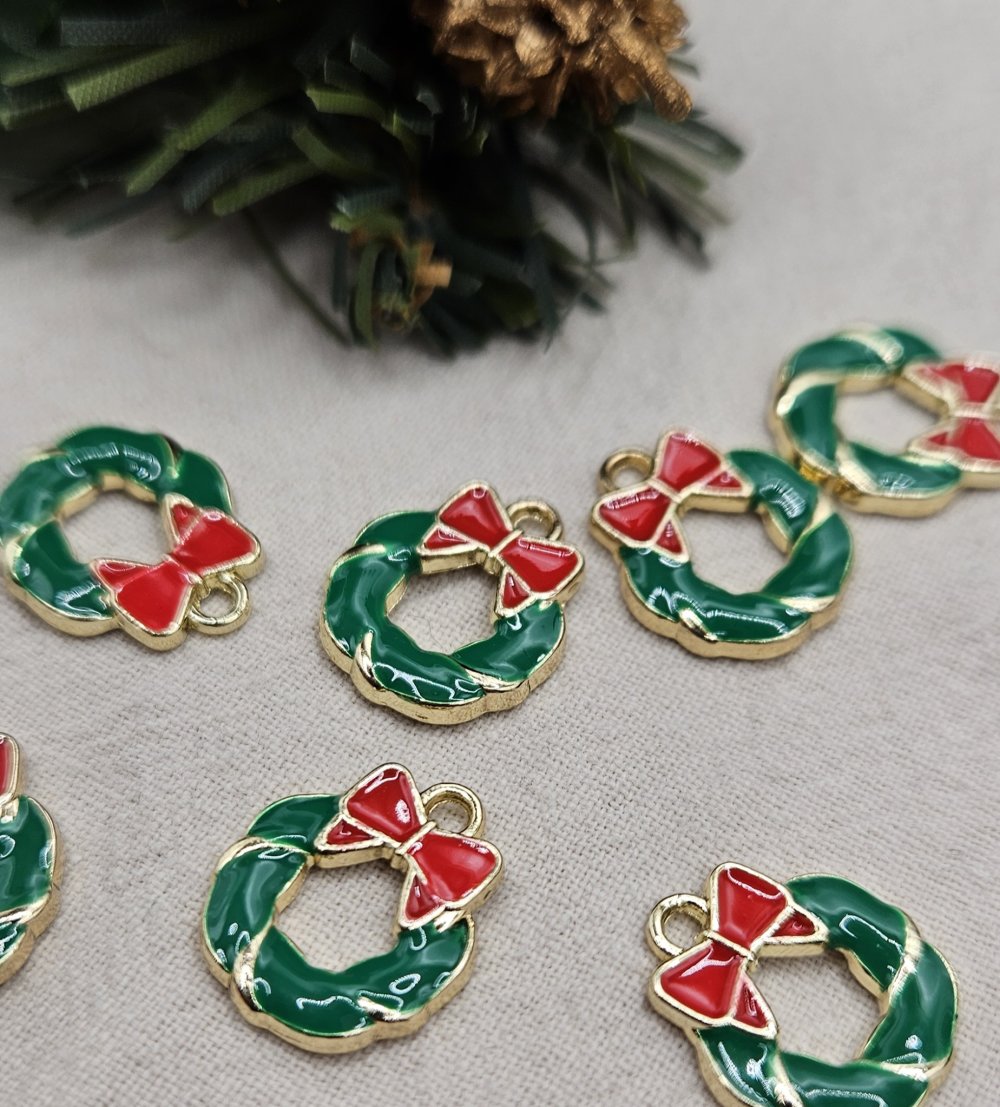 breloque en métal pour créations de Noël, fabrication de Noël, pendentif en métal, breloque noël, charm noël, couronne de Noël, breloque émaillée, breloque dorée, pendentif de Noël