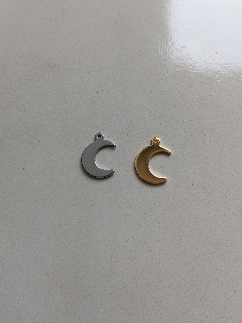 Breloque demi-lune dorée en acier inoxydable. Dimensions : 16x11mm - A l'unité ou en lot de 10 pièces