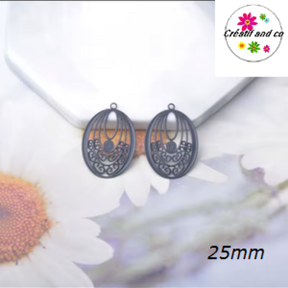 Breloque estampe ovale noire 25mm