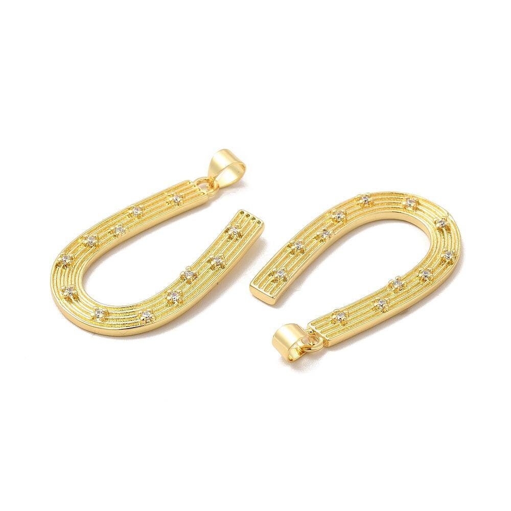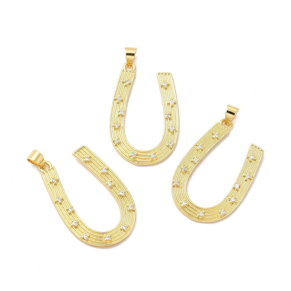Breloque Fer à cheval Pendentif fer à cheval en laiton plaqué or 18 carats pendentif porte bonheur 32 mm