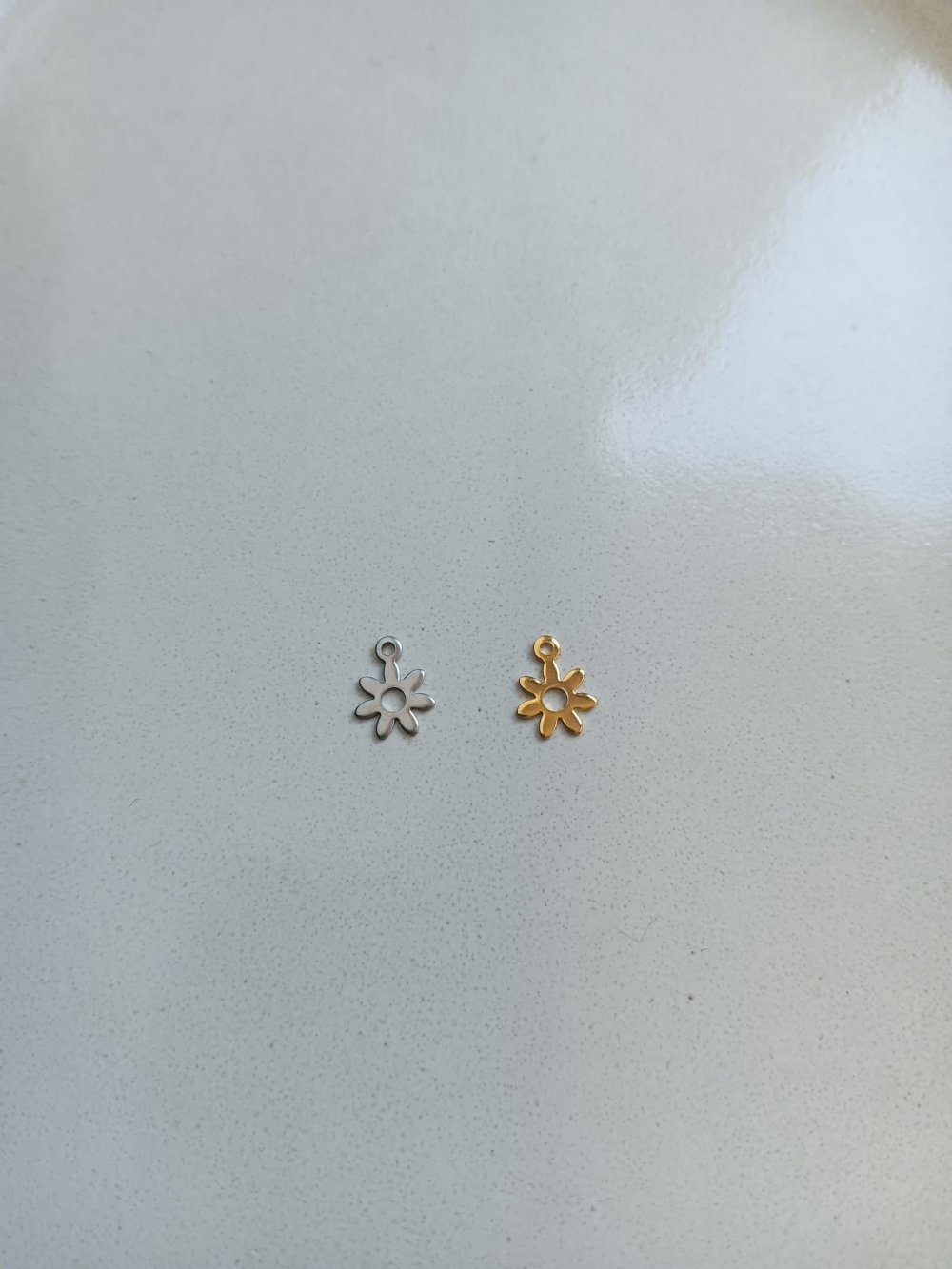 Breloque fleur argentée en acier inoxydable.