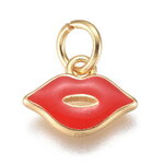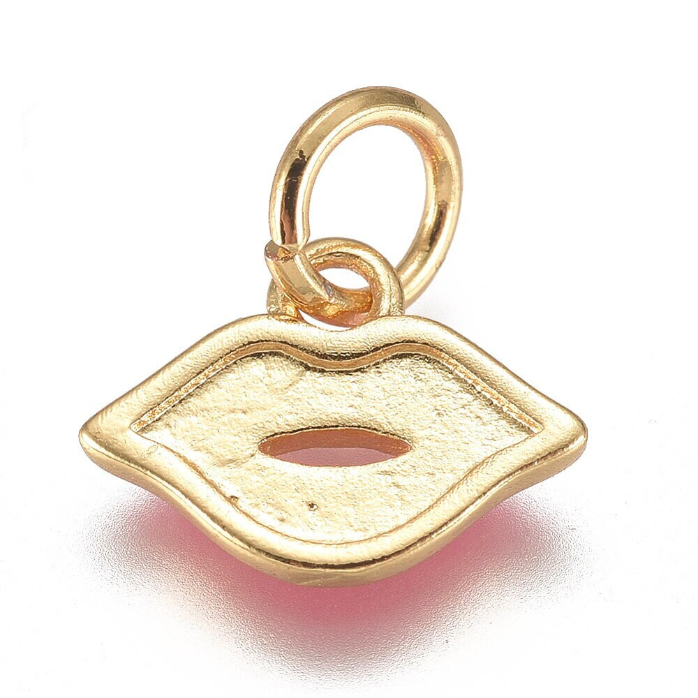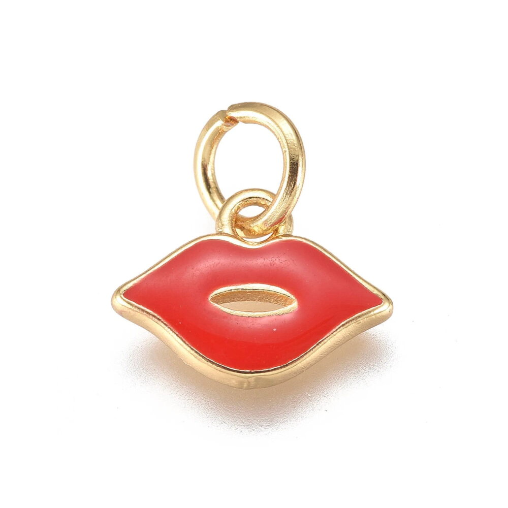Breloque lèvre plaqué or 18 carats émail rouge 8 mm pendentif lèvre création bijoux
