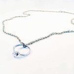 Breloque Pendentif Alliance Bague Mariage Fiançailles Argenté avec Cristal Strass, Taille de la bague 7, peut être portée au doigt ou montée sur chaîne, vendue avec une chaîne torsadée Argentée d'une longueur de 68cm.