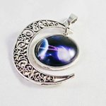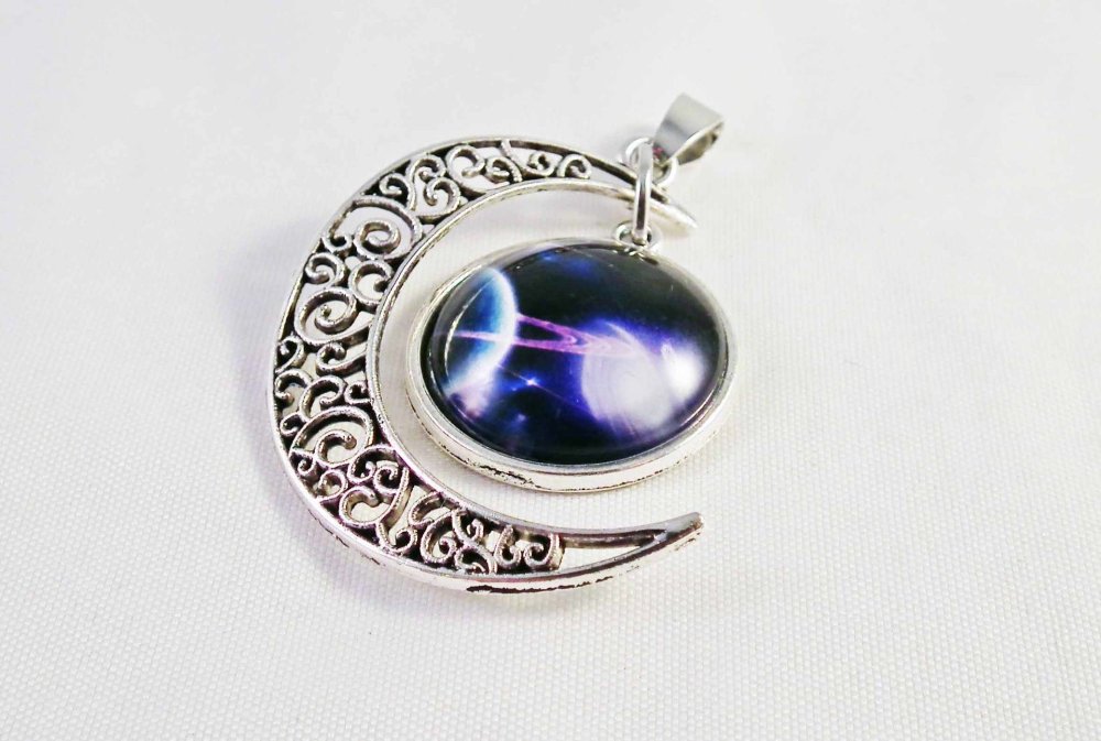 Breloque Pendentif Cabochon Motif Lune Argent Vieilli et Galaxies avec Bélière
