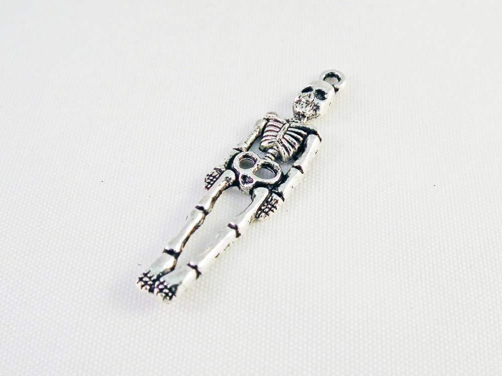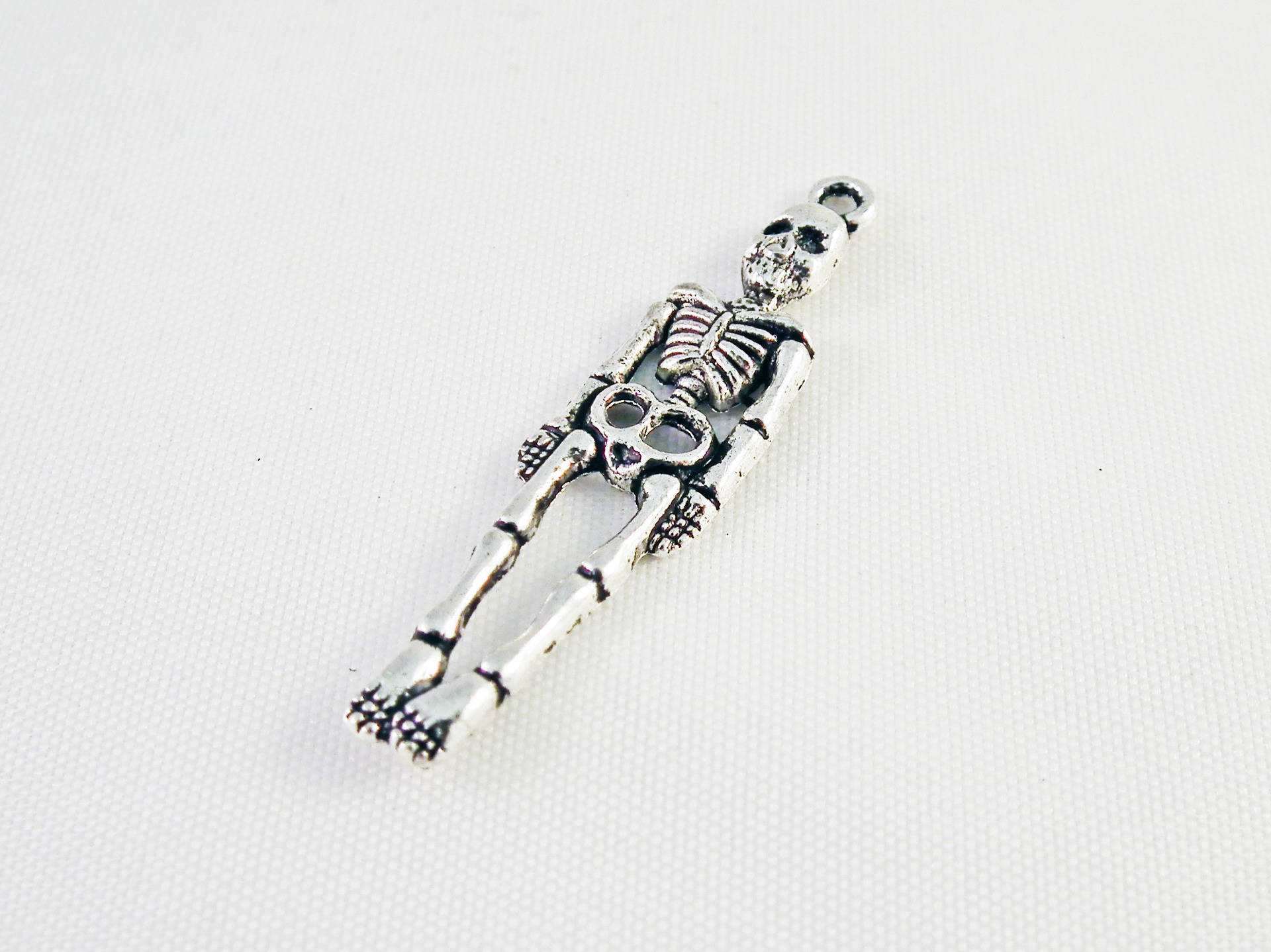 Breloque Pendentif Tête de Mort Squelette Argent Vieilli, 39mm X 9mm, Épaisseur 3mm, Taille de trou 1mm.