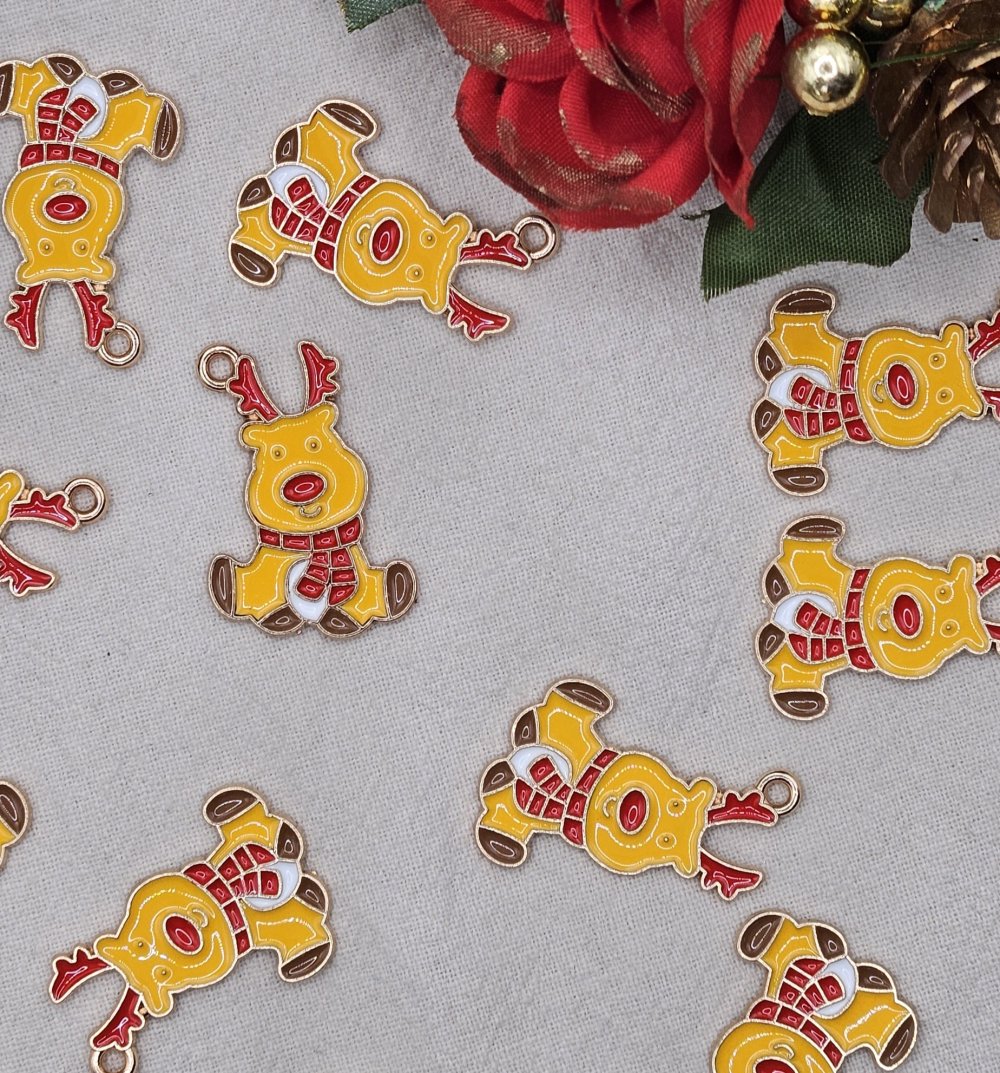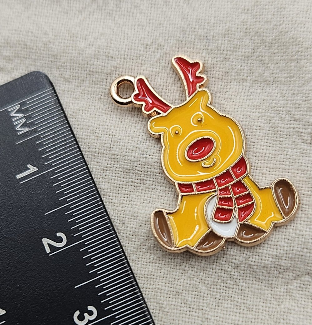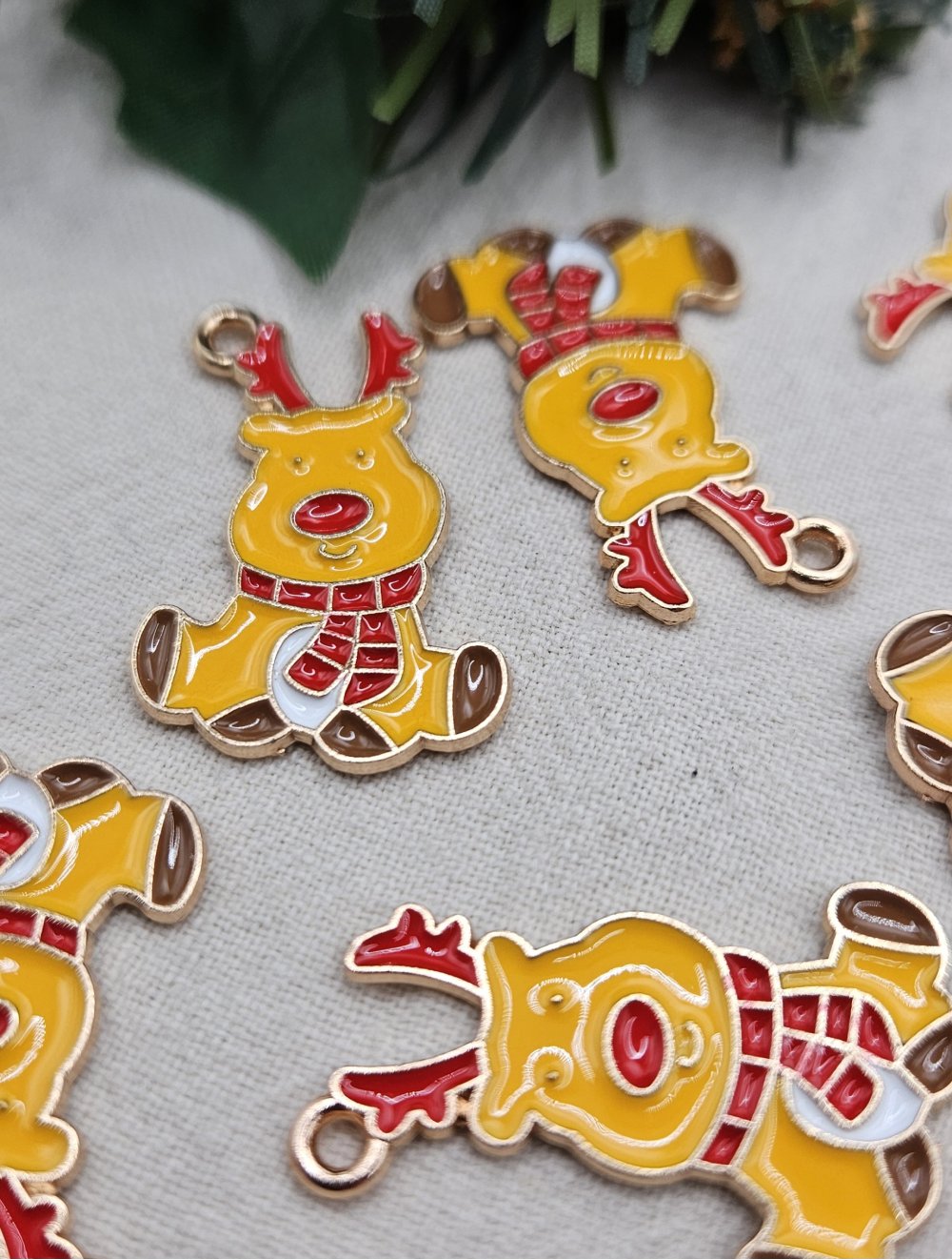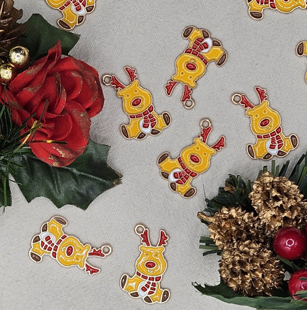breloque en métal pour créations de Noël, fabrication de Noël, pendentif en métal, breloque noël, charm noël, renne de Noël, breloque émaillée, breloque dorée, pendentif de Noël doré