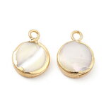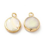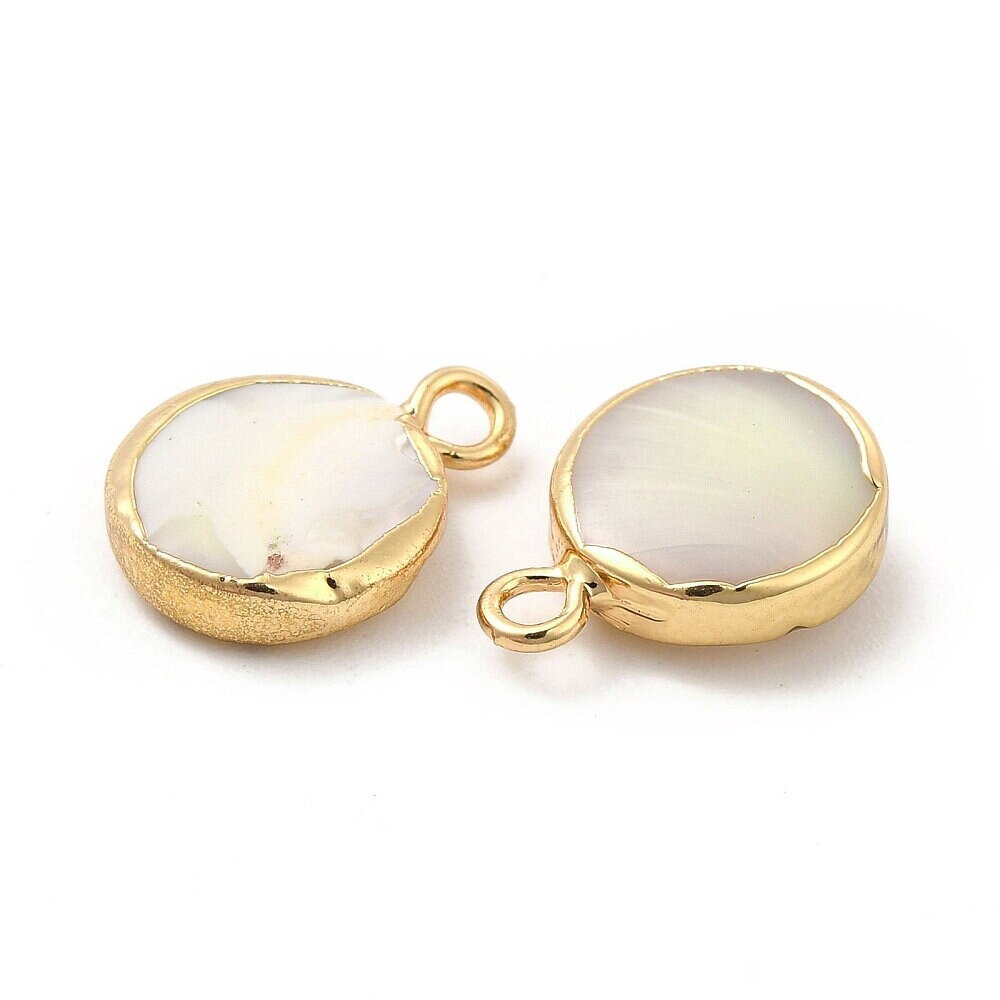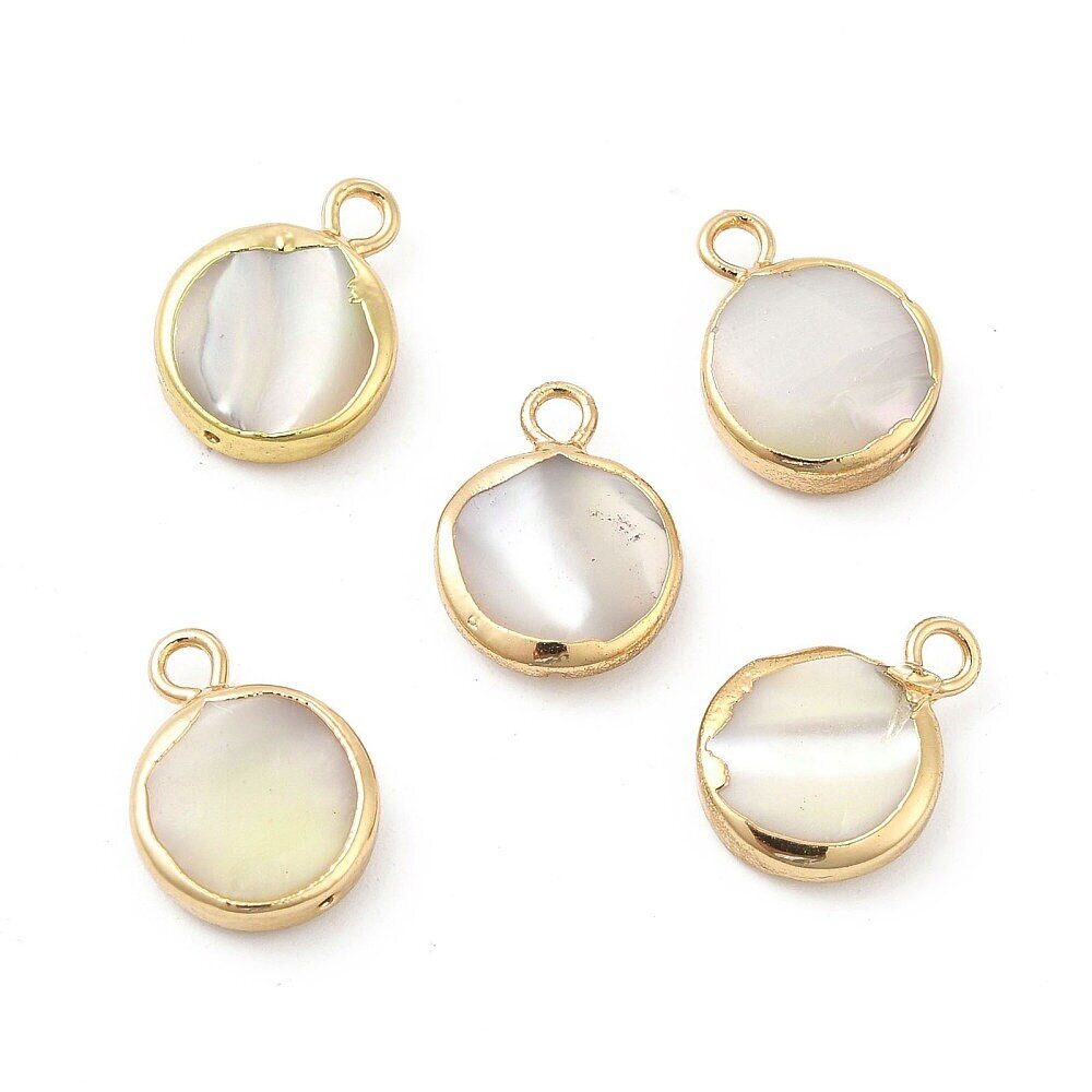 Breloque rond en nacre pendentif coquille ronde en laiton doré 13 mm