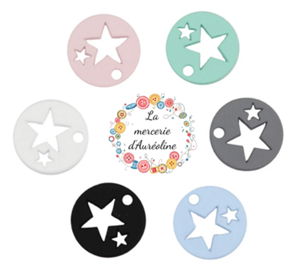 Charm rond aux étoiles évidés en métal coloré avec un trou pour l'accroche.
