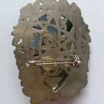 Broche style "Art Nouveau" en métal argenté décoré et fleurs violettes en plastique