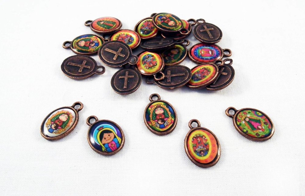 Lot de 5 petites breloques pendentifs Médaille Médaillons ovales mignon motifs Cartoon BD religieux Rouge Cuivré