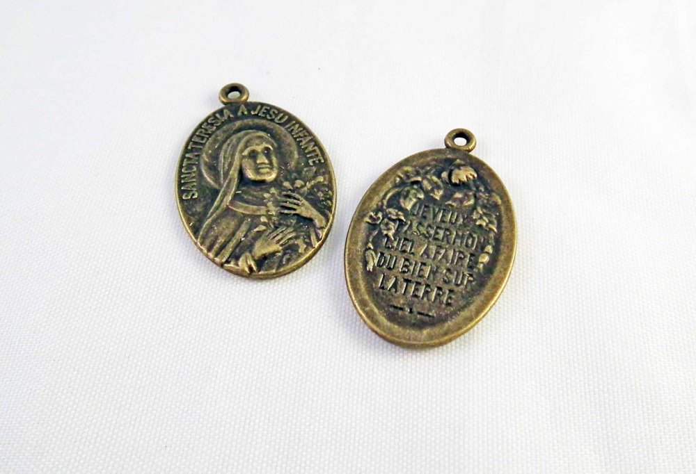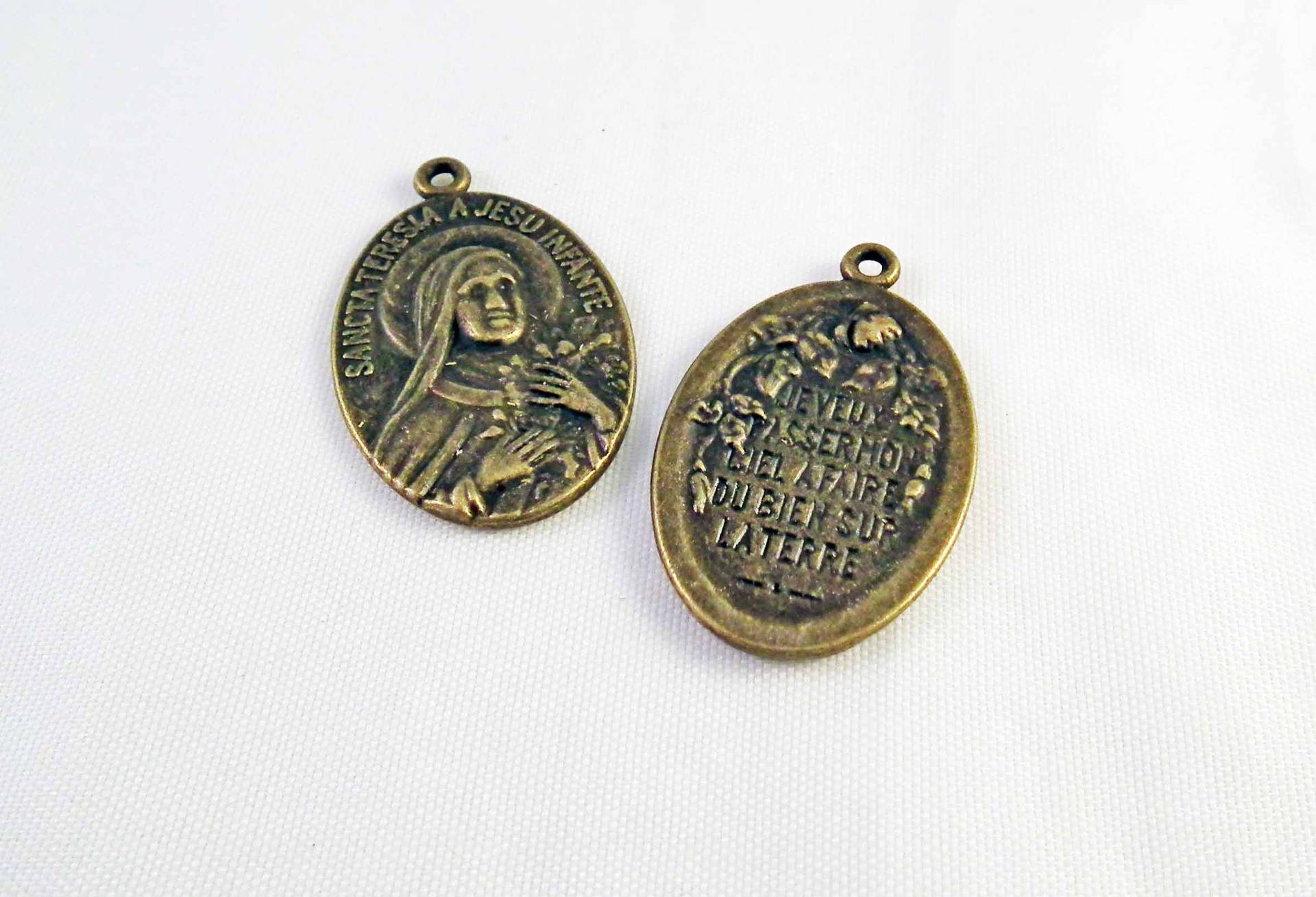 Lot de 2 Breloques Pendentifs Médaille Médaillon Religieux Église Vierge Marie de couleur Bronze
