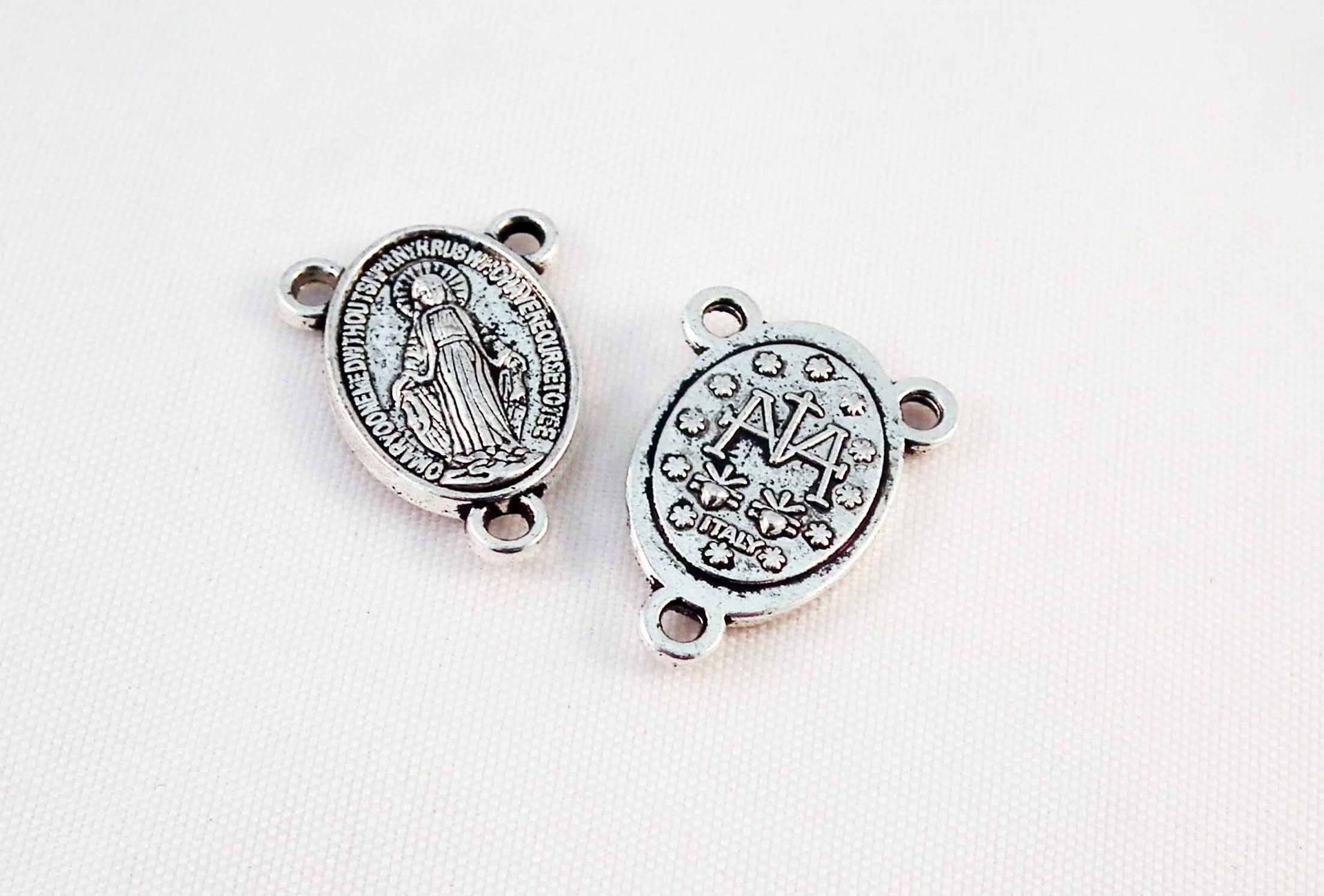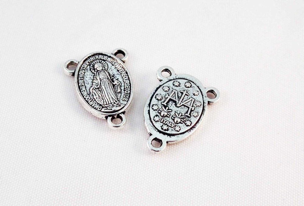 Lot de 2 Breloques Pendentifs Médaille Médaillon Croix Religieux Connecteur 3 Trous Vierge Marie