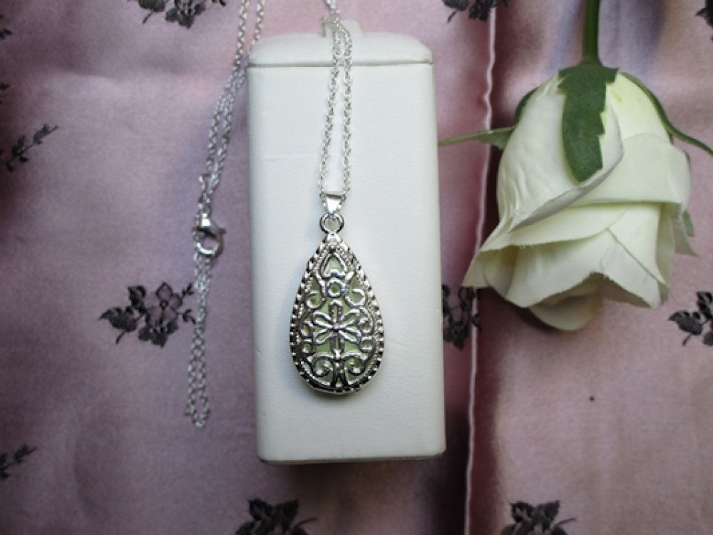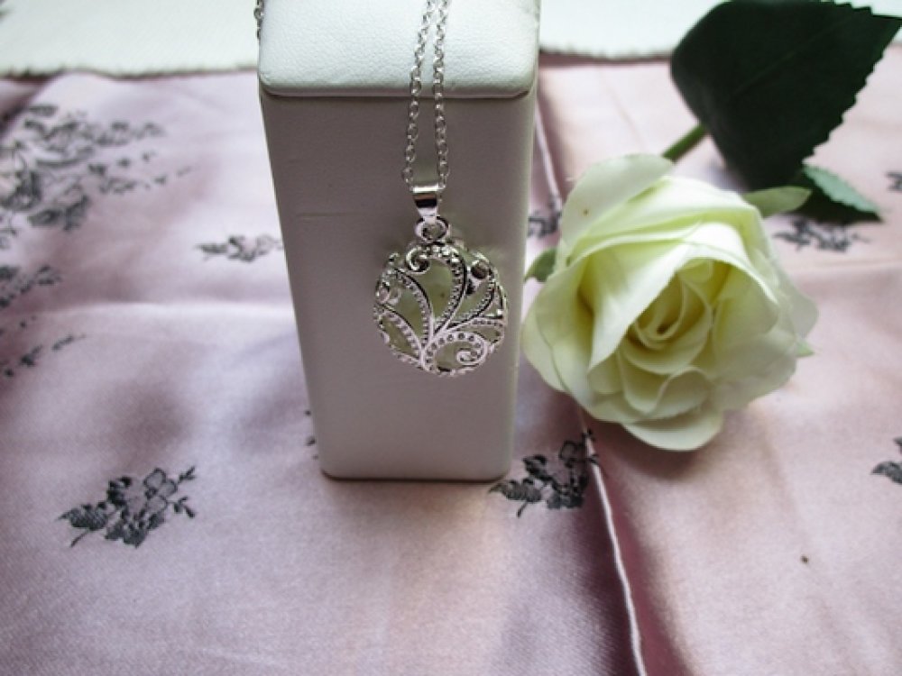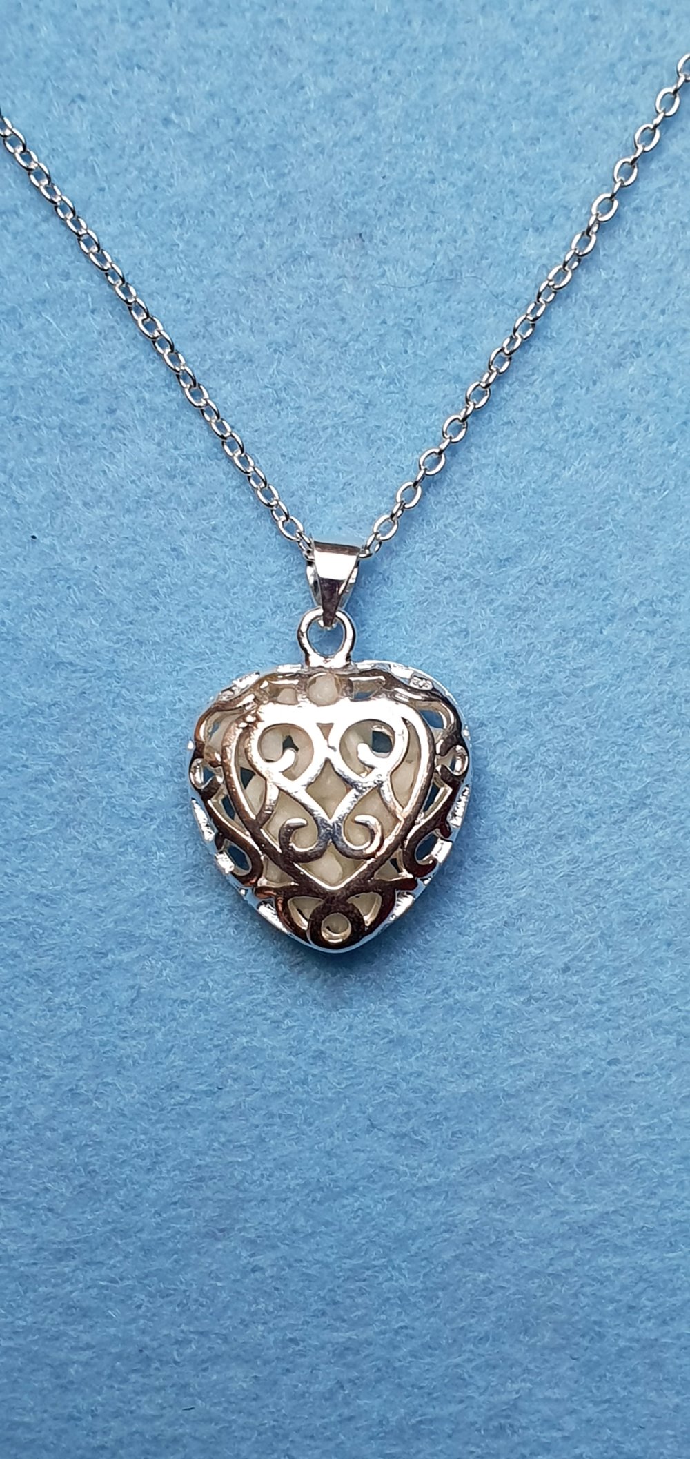 Collier coeur filigrane fluorescent bleu 26x18mm argent tibétain Chaine 45cm