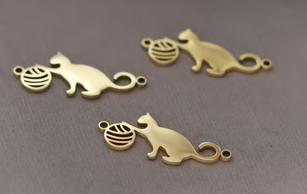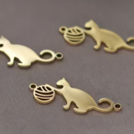 Connecteur breloque chat pelote de laine acier inoxydable doré