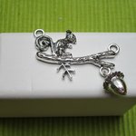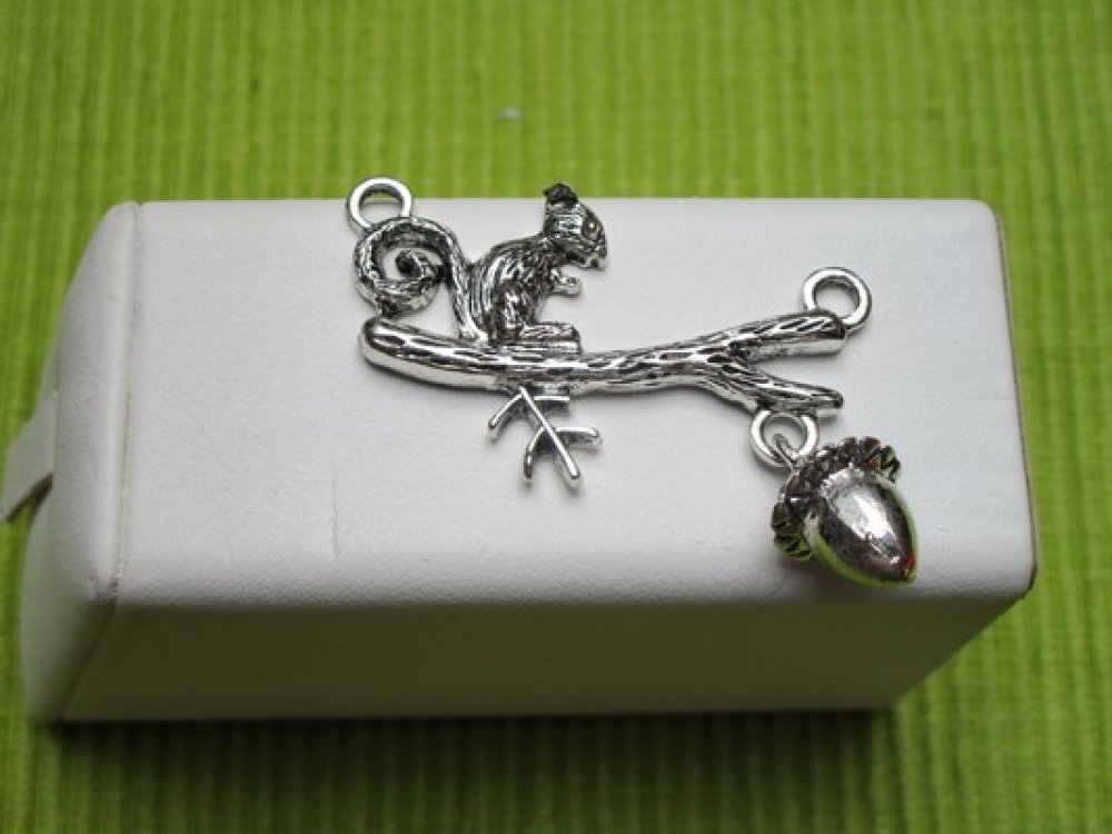 Pendentif connecteur écureuil sur branche fruit gland 4.2x3.8cm mobile plein argent tibétain