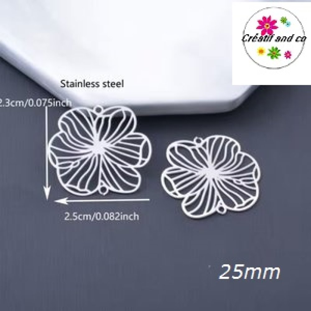 Connecteur estampe fleur argent 25mm