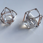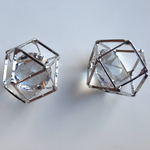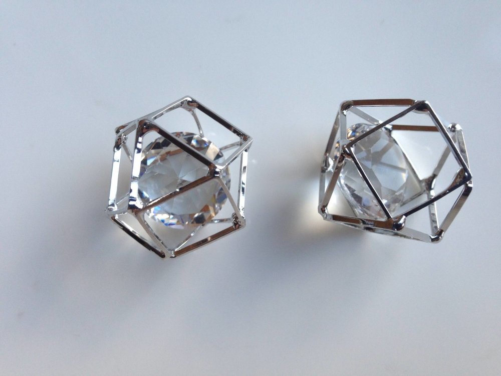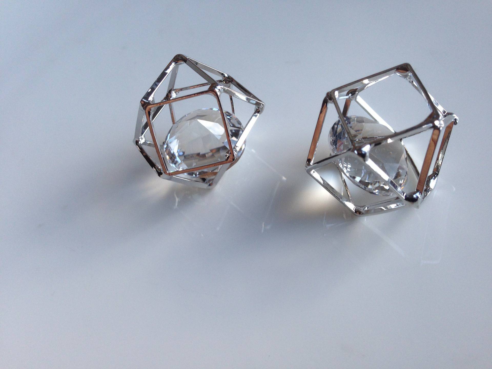 Ce duo de très beaux pendentifs (polyèdres) avec des faces ouvertes en métal argenté et un cabochon en cristal à l'intérieur mesurent 22mm de diamètre, très légers, ils peuvent être montés pour des colliers ou boucles d'oreilles