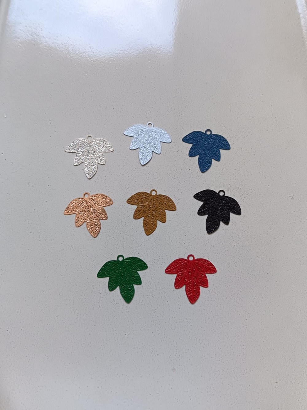 Estampe filigrane feuille jaune moutarde en métal. Dimensions : 20x23mm - A l'unité ou en lot de 10 pièces