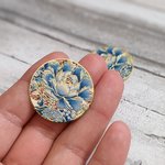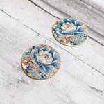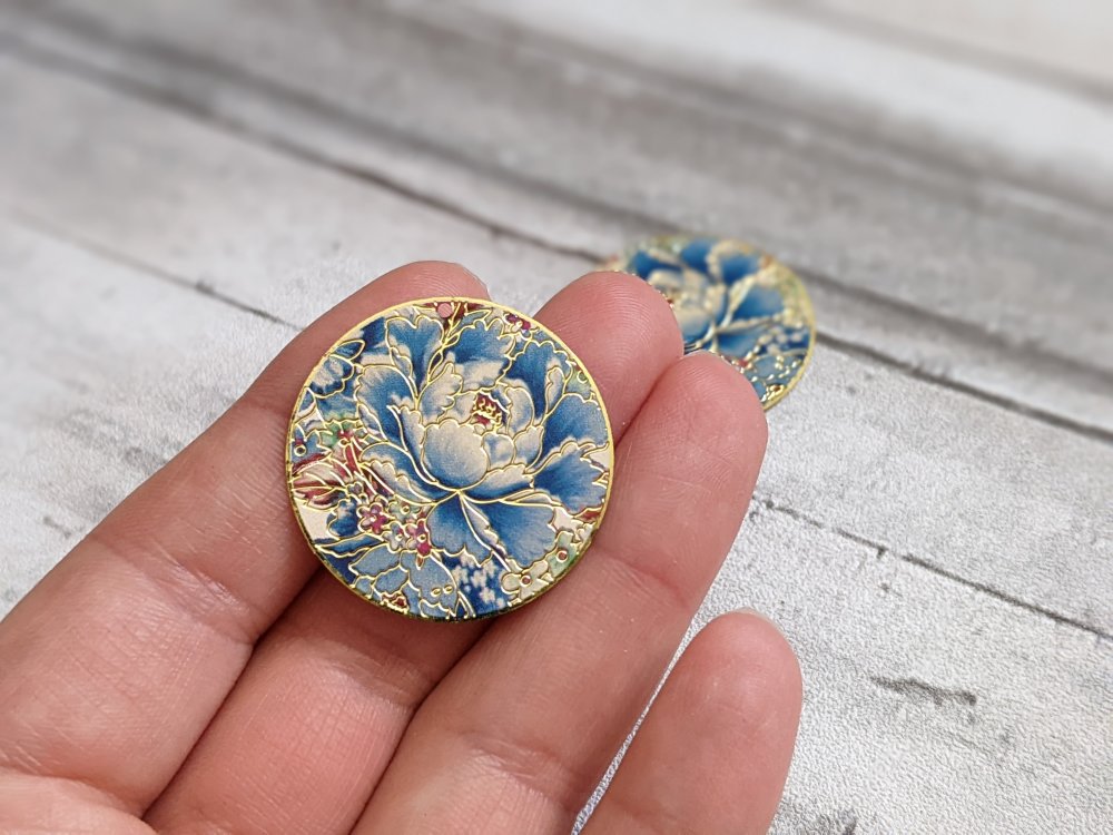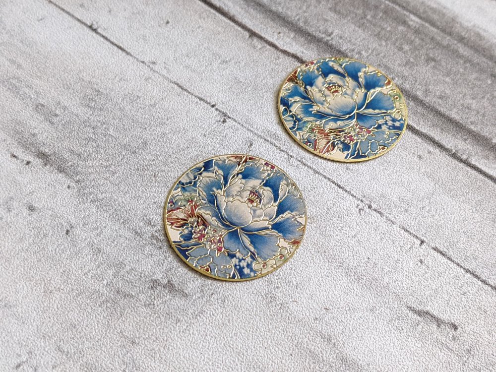 2 estampes rondes type créoles en laiton émaillé bleu rouge et blanc