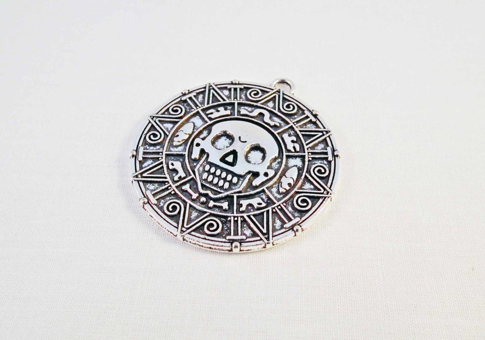 Grand Pendentif Double Face différentes Médaille Médaillon Tête de Mort Logo Pirate des Caraïbes en Argent Tibétain