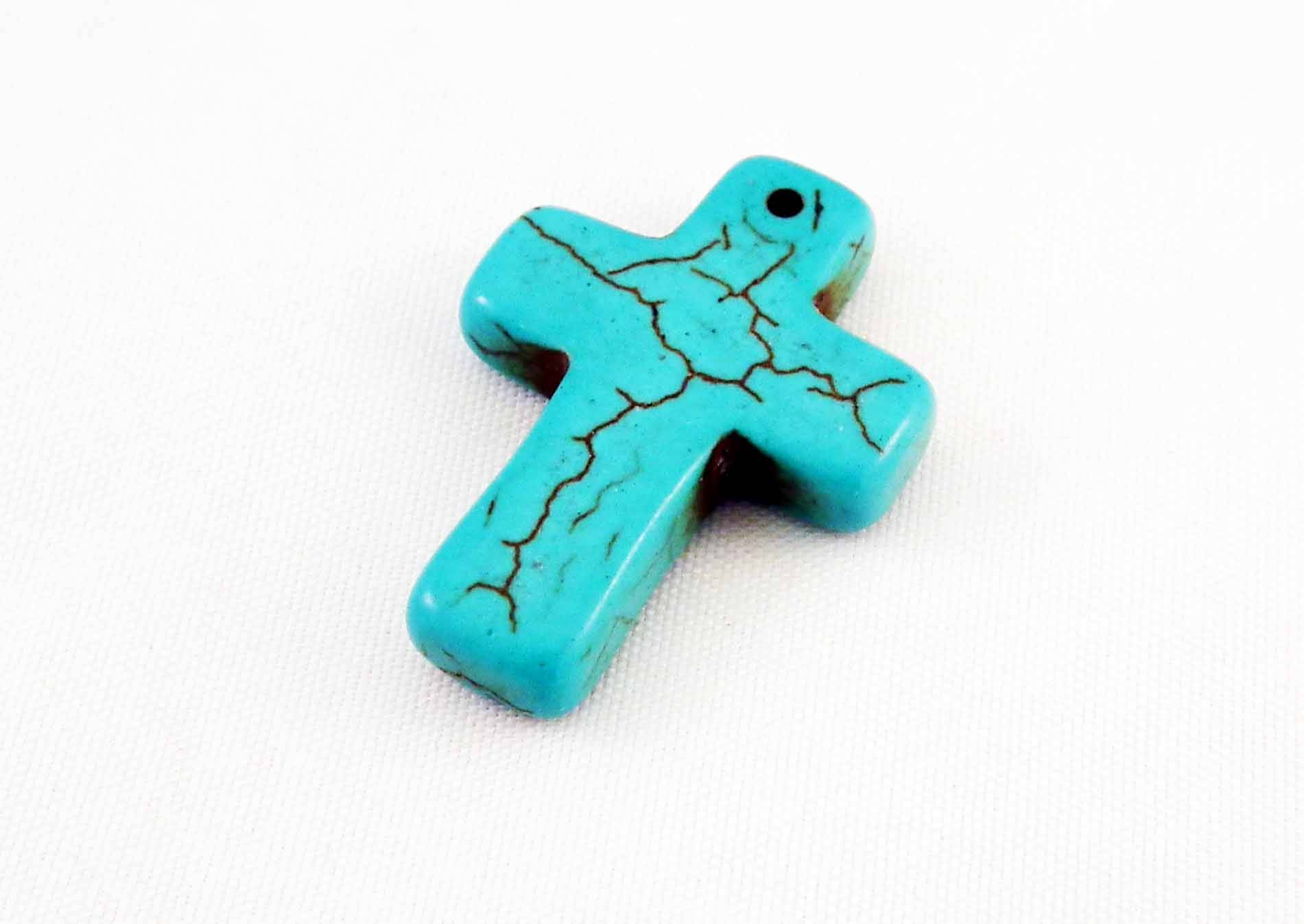 Grande Breloque Pendentif Howlite Turquoise Croix de 3cm