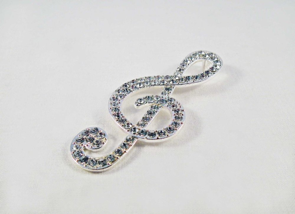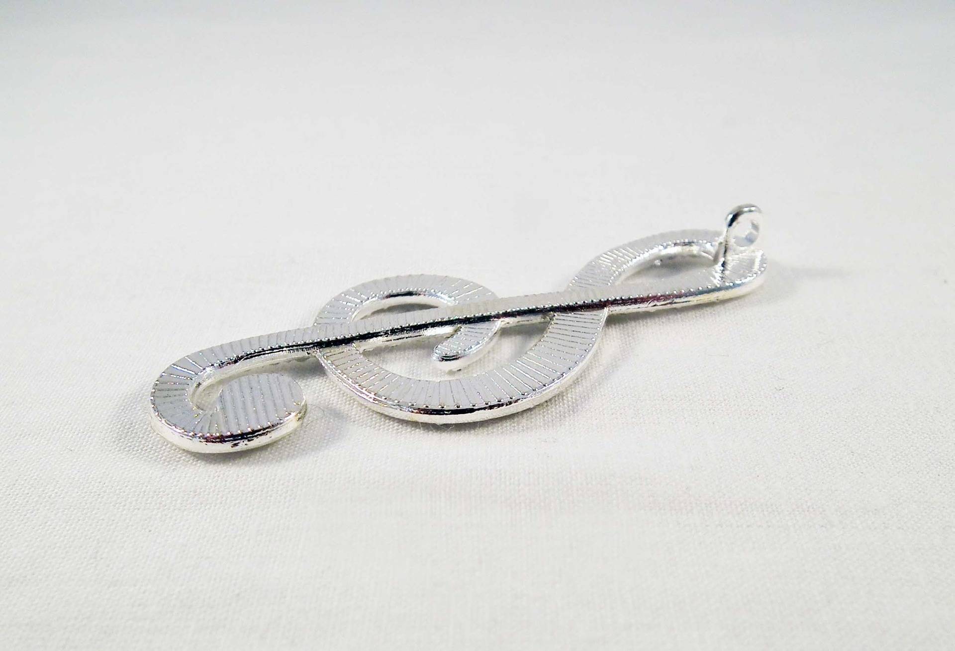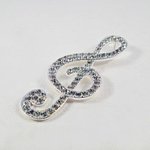 Grande Clé de Sol Argentée avec Cristaux Swarovski argentés, 55mm X 22mm.