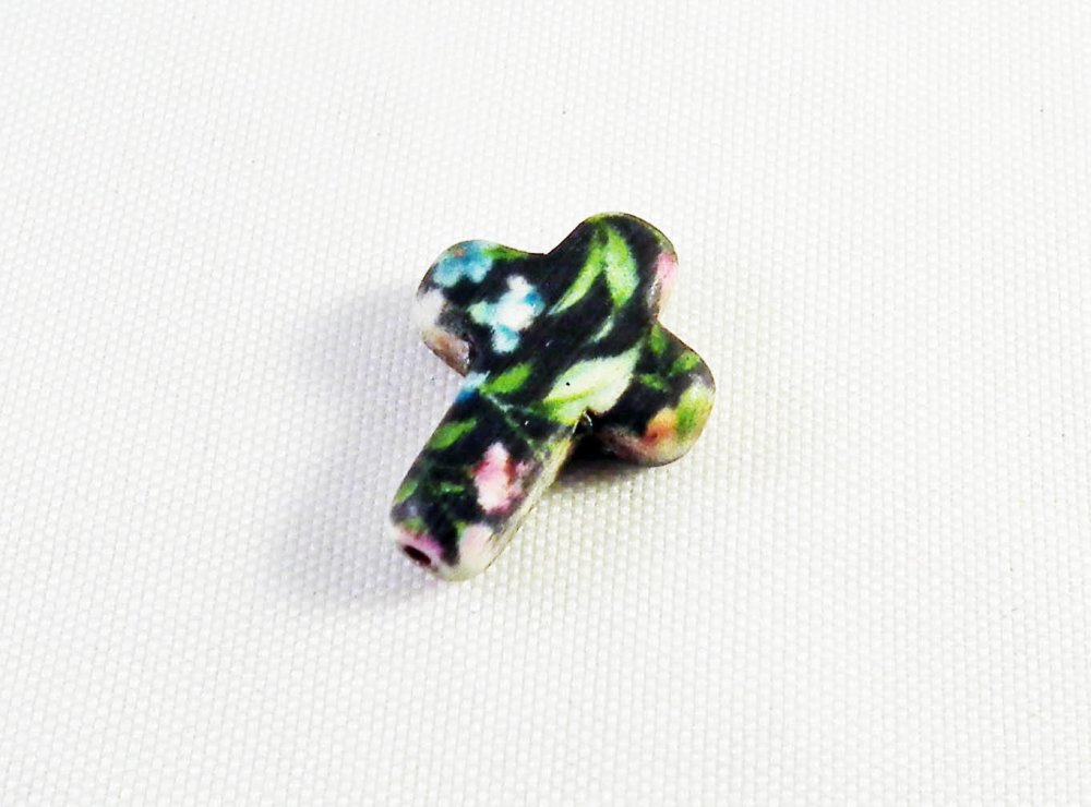 Une Perle Howlite en forme de Croix à motif Fleuri, 16mm X 12mm, Taille de trou 1mm.