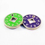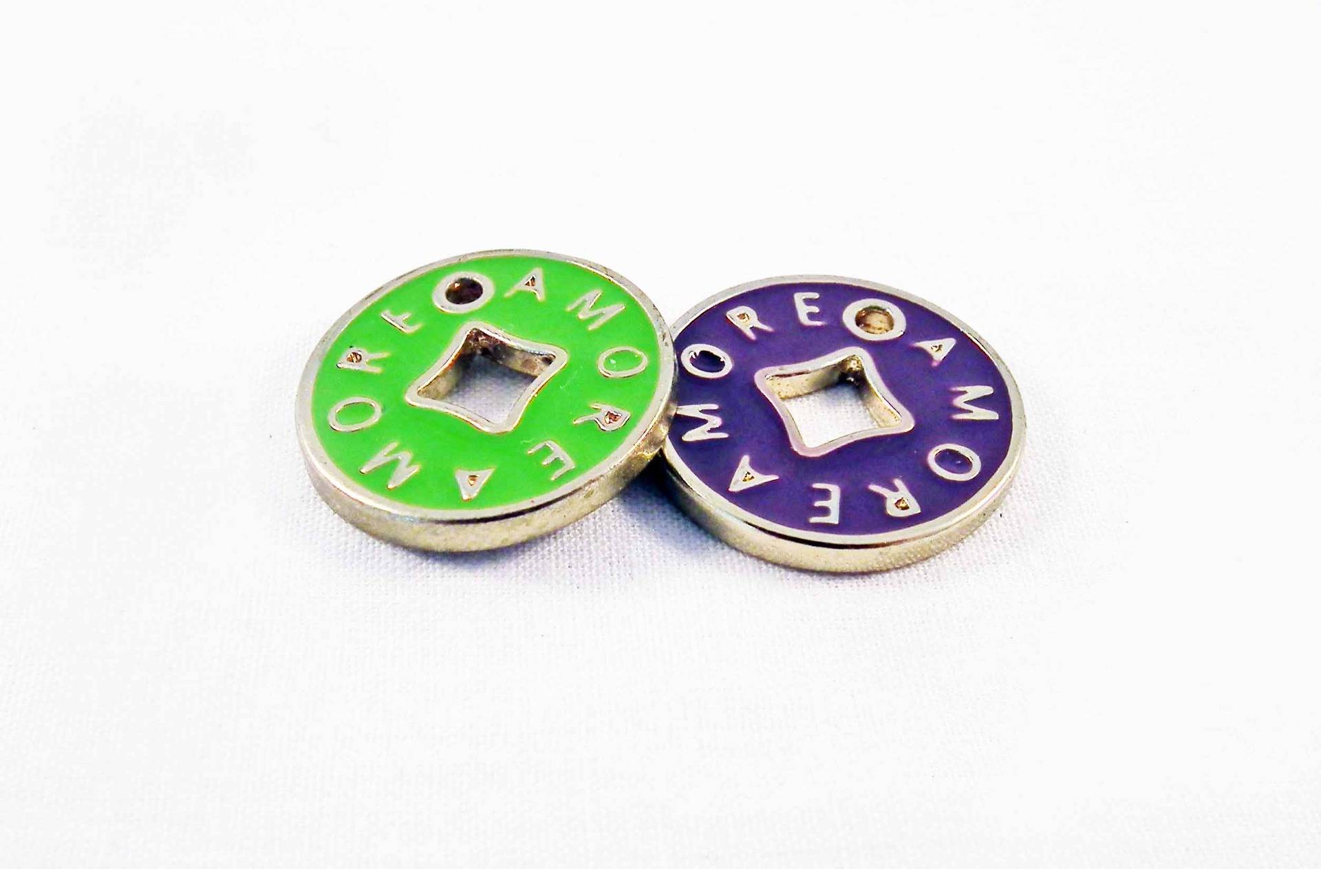 Joli lot de 2 Pendentif Breloques Réversibles Vert et Mauve "AMORE" de style monogramme monture Doré Champagne Médaillon, 2cm X 2cm, Épaisseur 2mm.