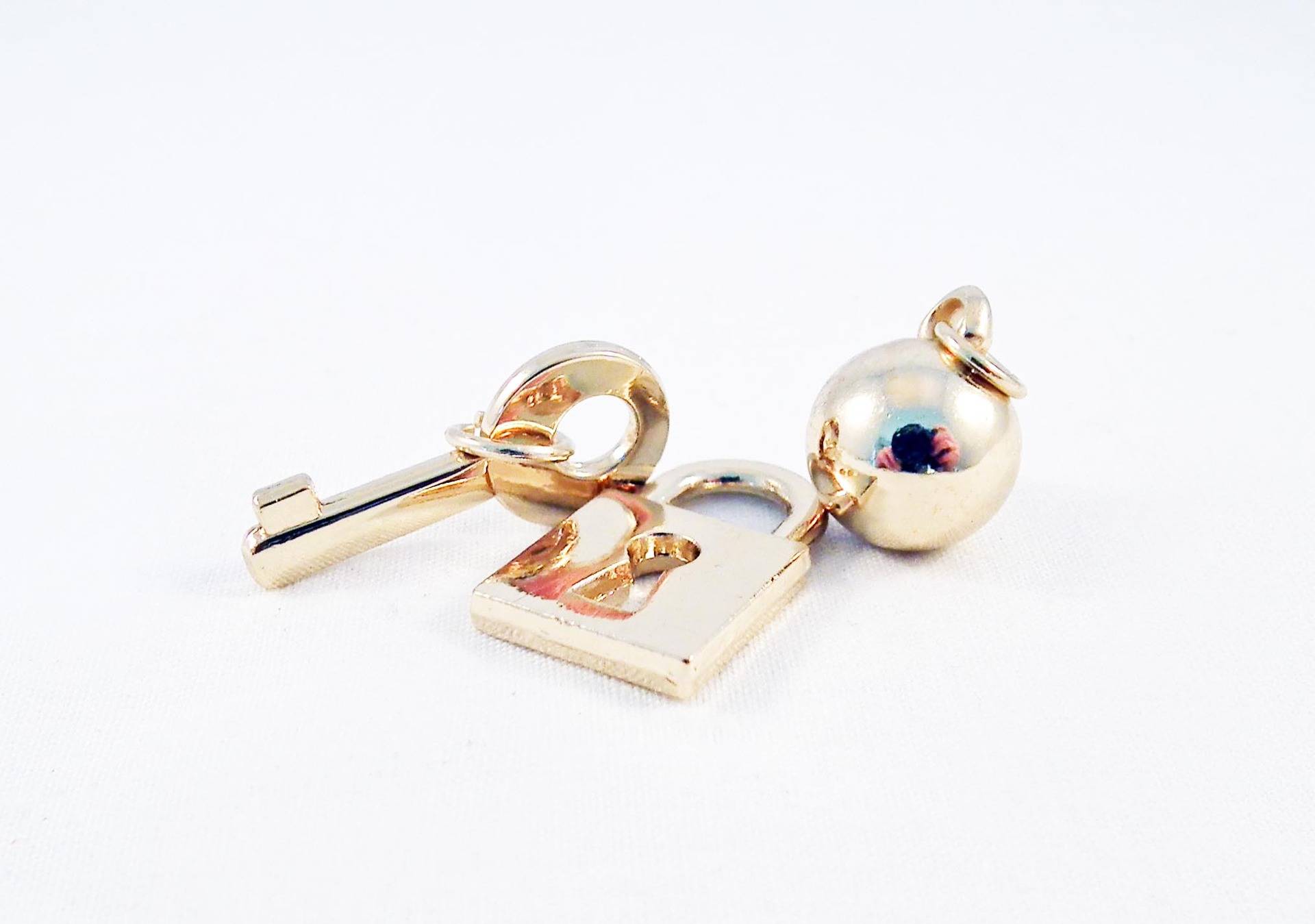 Joli lot de 3 Pendentif Breloques Clé Cadenas et Boule ronde de couleur Doré Champagne