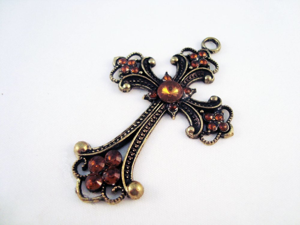 Jolie Croix Rétro avec Cristal Swarovski de couleur Bronze, 6cm X 4.5cm.