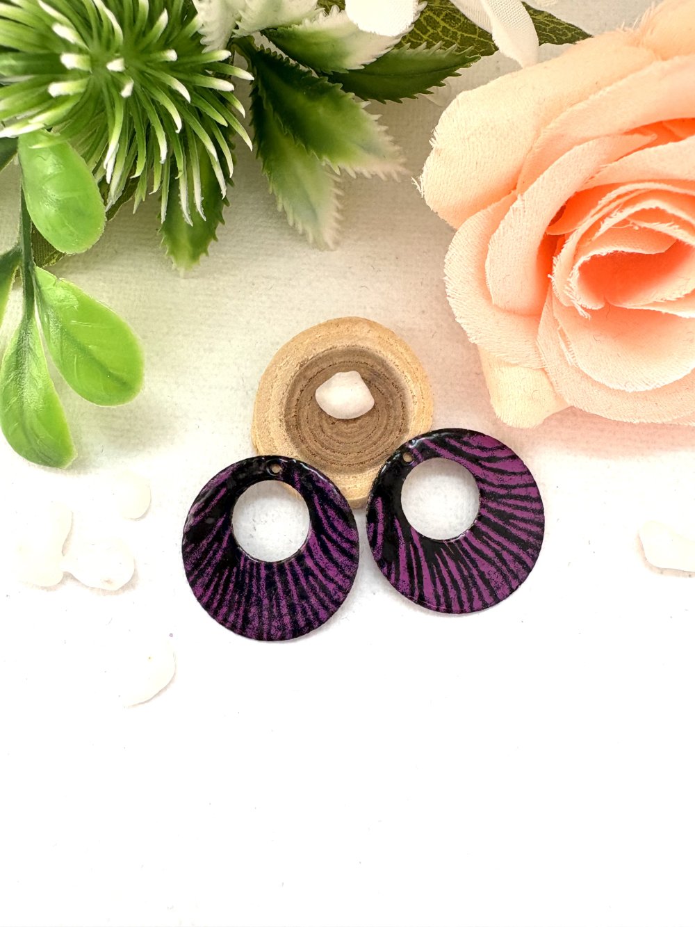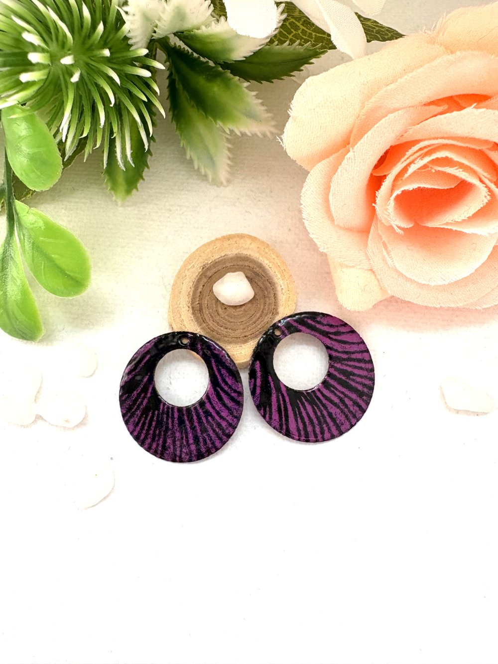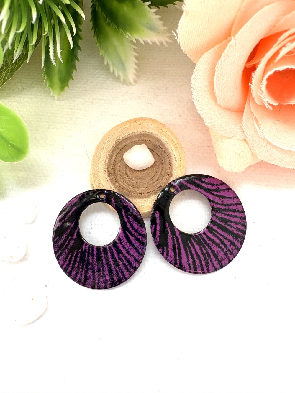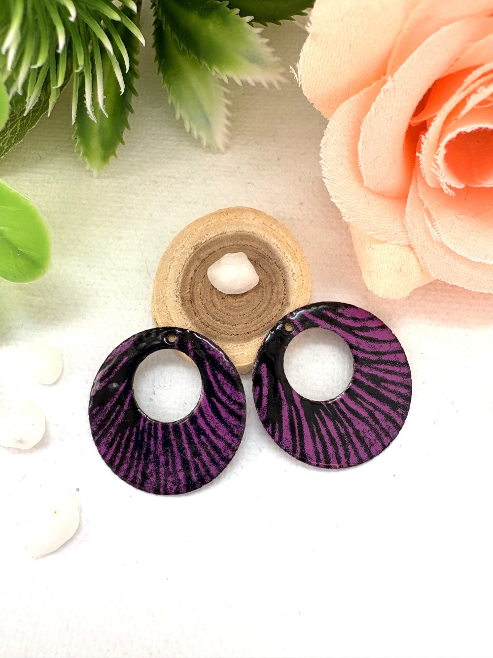 lot de 2 sequins créoles émaillés noir et mauve 2 faces 22 mm