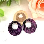 2 sequins créoles émaillés noir et mauve 22 mm 2 faces