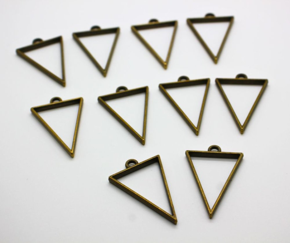 Lot de 10 breloques triangles creux coloris laiton / bronze