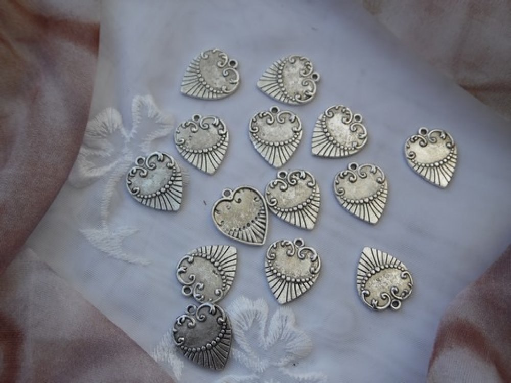 Lot de 2 Breloques Coeur Ciselés 3D Creux Arrière 16x17x1mm Argent Tibétain