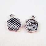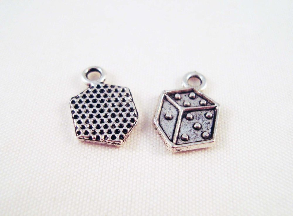 Lot de 2 Breloques Pendentif Dé Dés à Jouer Argent Vieilli, 15mm X 9mm.
