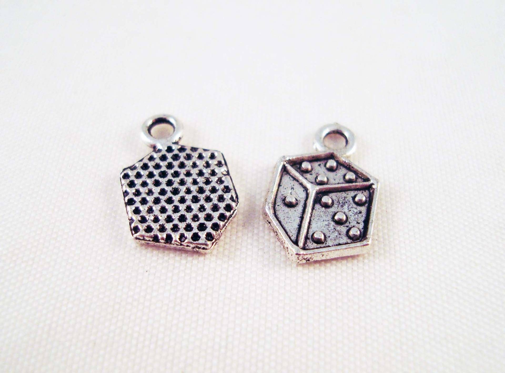 Lot de 2 Breloques Pendentif Dé Dés à Jouer Argent Vieilli
