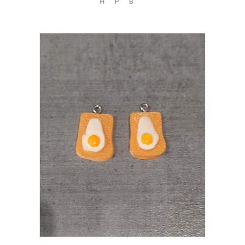 Lot de 2 breloques résine en forme de toast