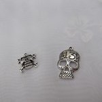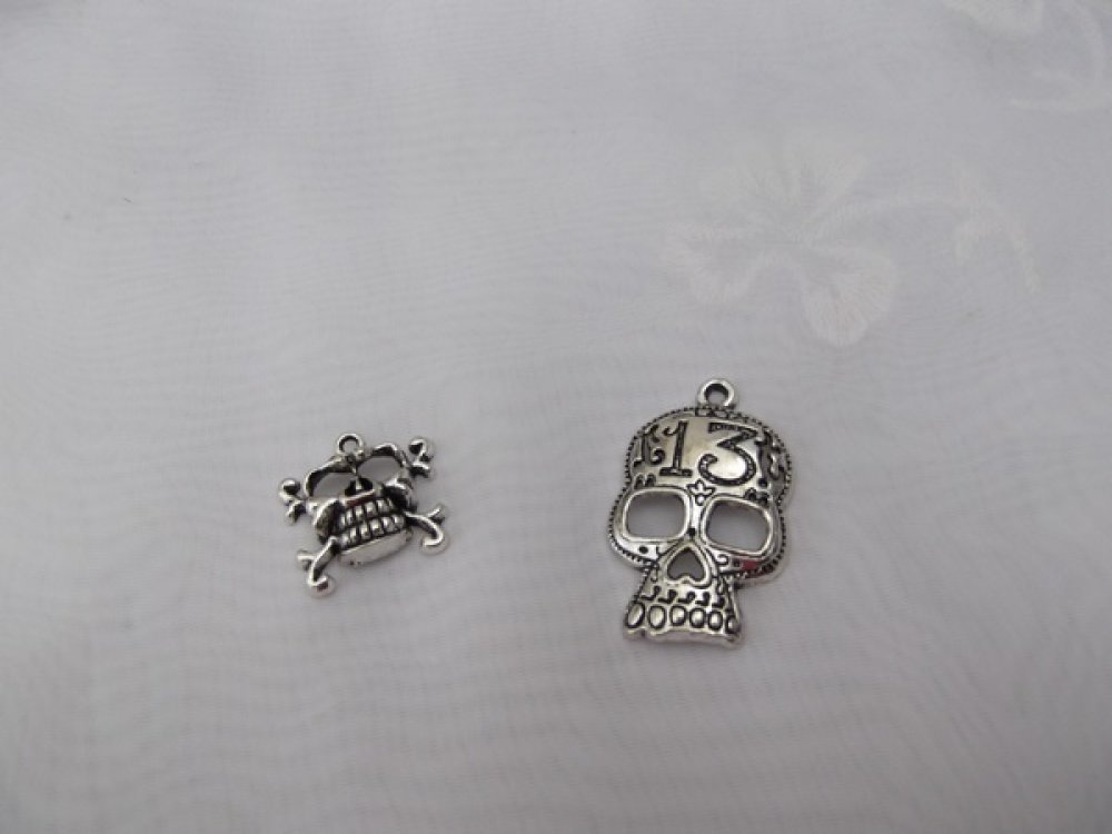 Lot de 2 Breloques Tête de Mort Argent Tibétain 39x24mm + 22x23mm