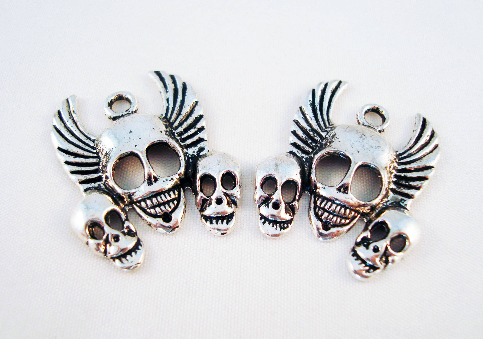 Lot de 2 Breloques Tête de Mort Crâne avec Ailes