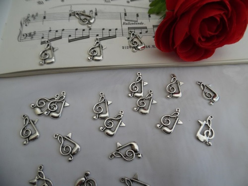 ARTICLE: Lot de 2 Pendentifs Clé de Sol/Croche 20.5x13.5mm Musique Argent Tibétain