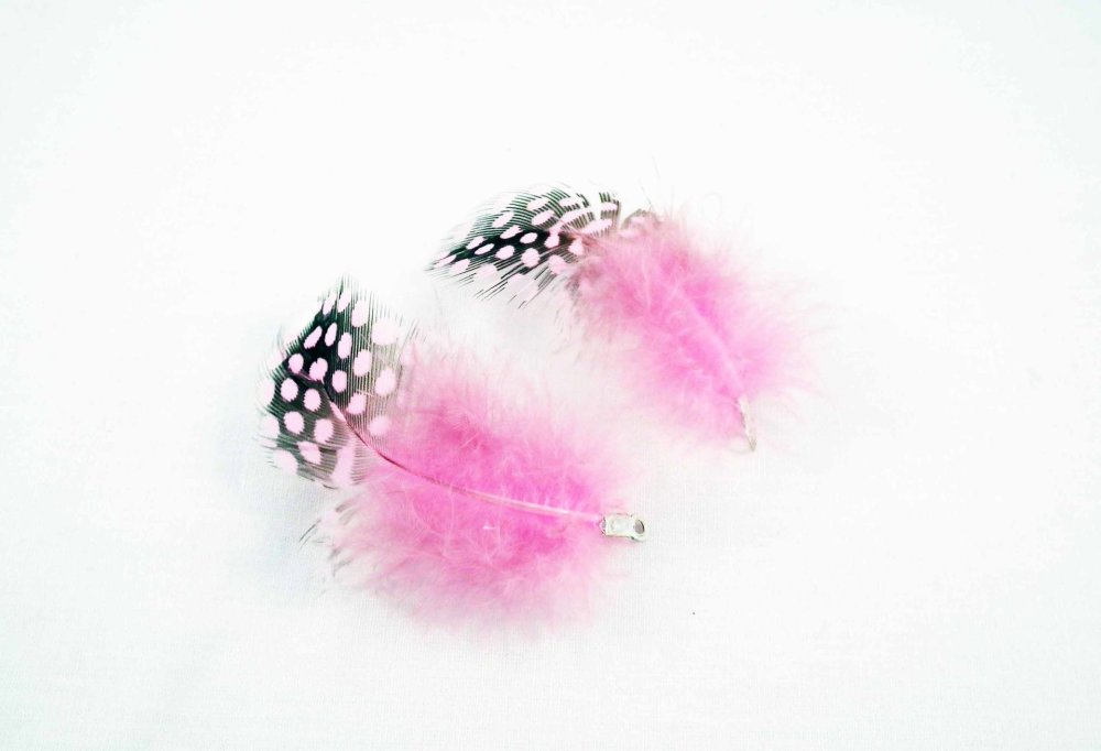 Lot de 2 Plumes de Pintade de Couleur Rose Avec Embouts Argentés, Approximativement 5cm en longueur, un seul lot disponible vous recevrez exactement les deux plumes en photo.