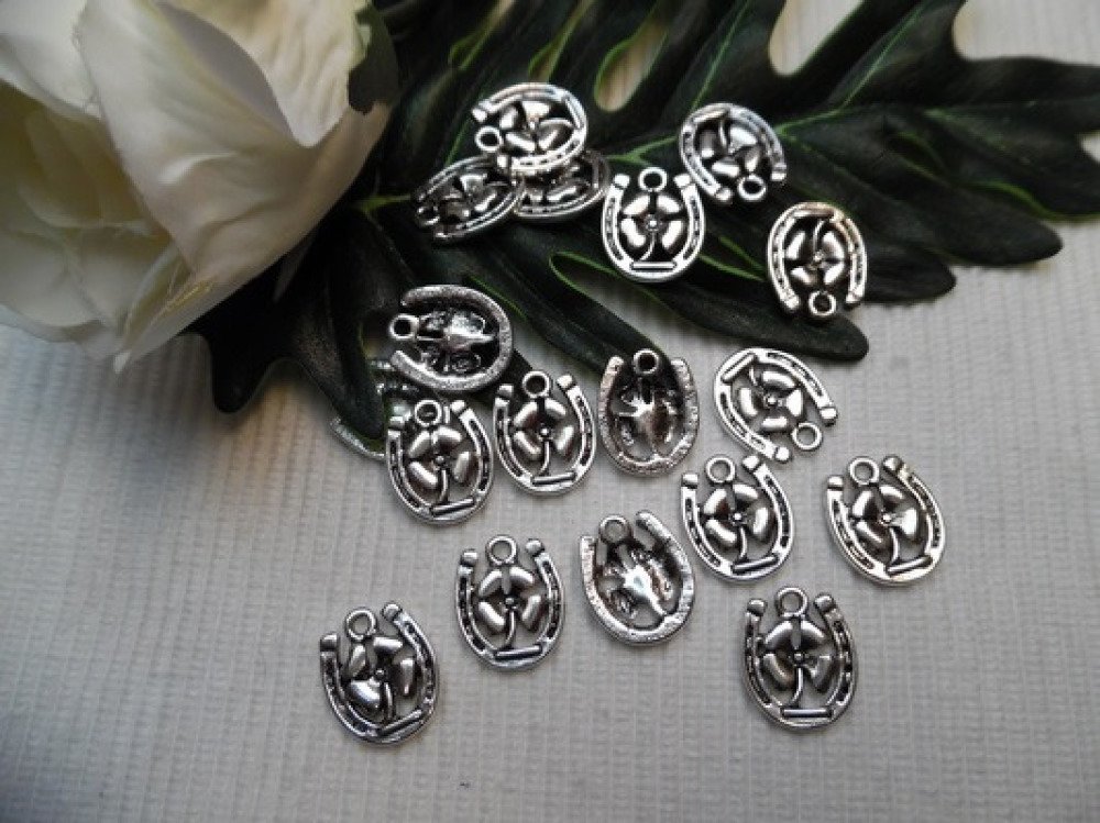 Lot de 3 Breloques Chance Trèfle Fer à Cheval Argent Tibétain 18x15mm