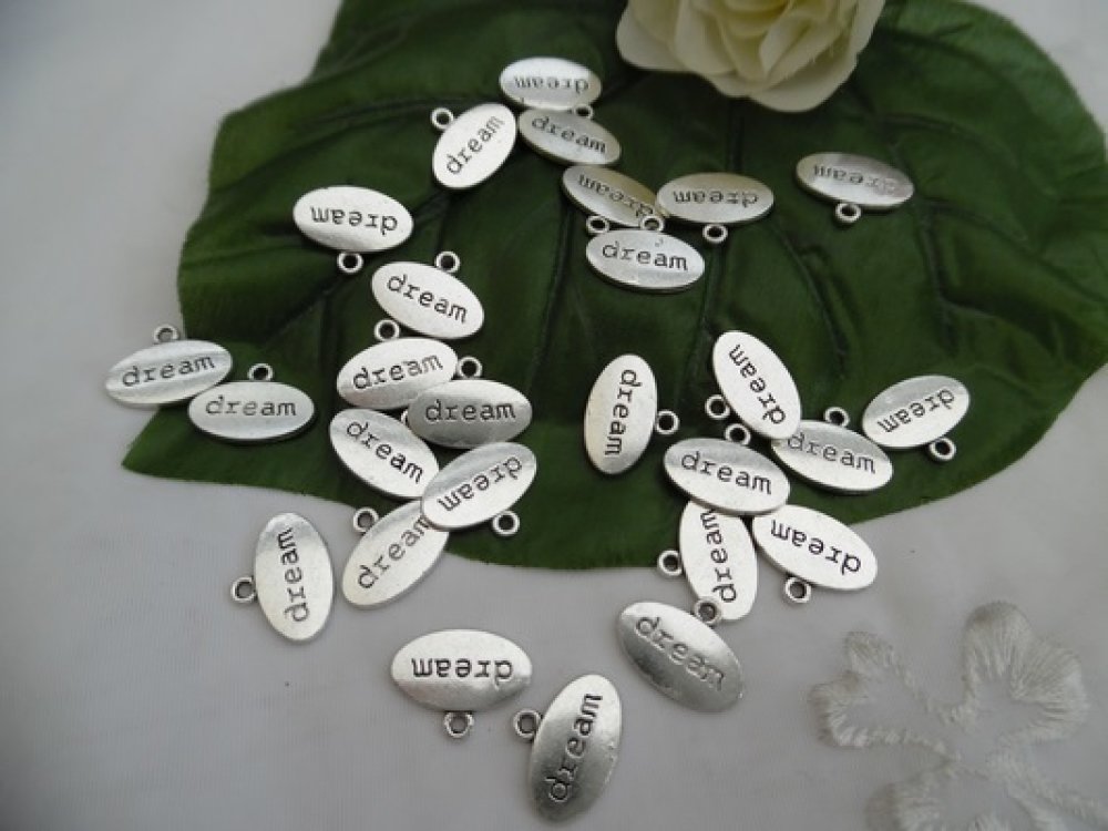 Lot de 3 Breloques Ovale Dream (Rêver) Plein Argent Tibétain 18x19mm
