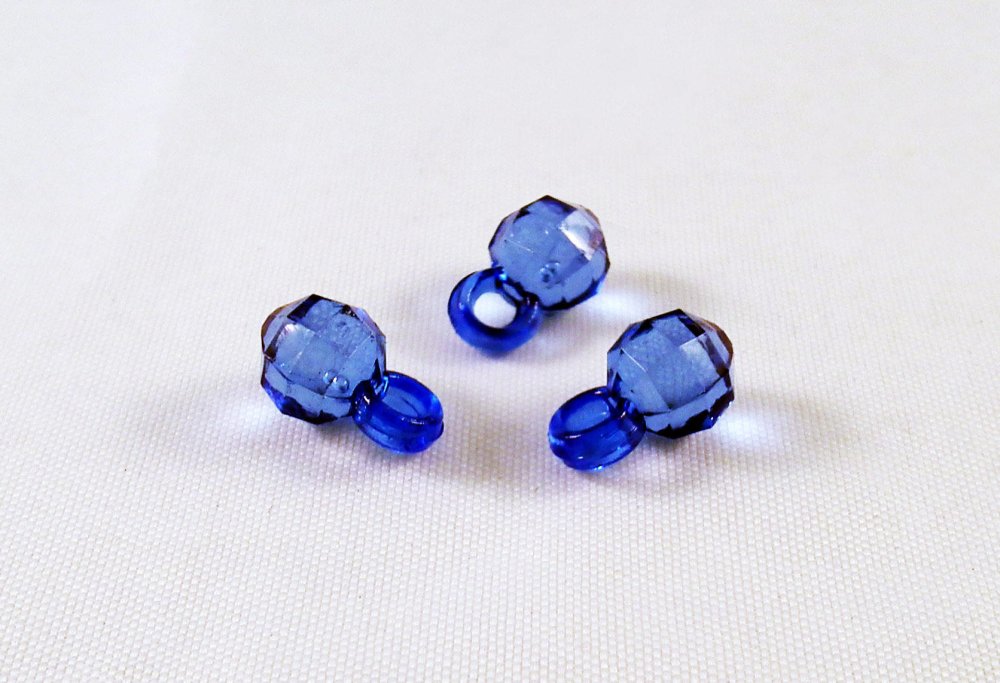 Lot de 3 Breloques Pendentifs Bague Diamant Perle à Facette Bleu en Acrylique, 10mm X 7mm.