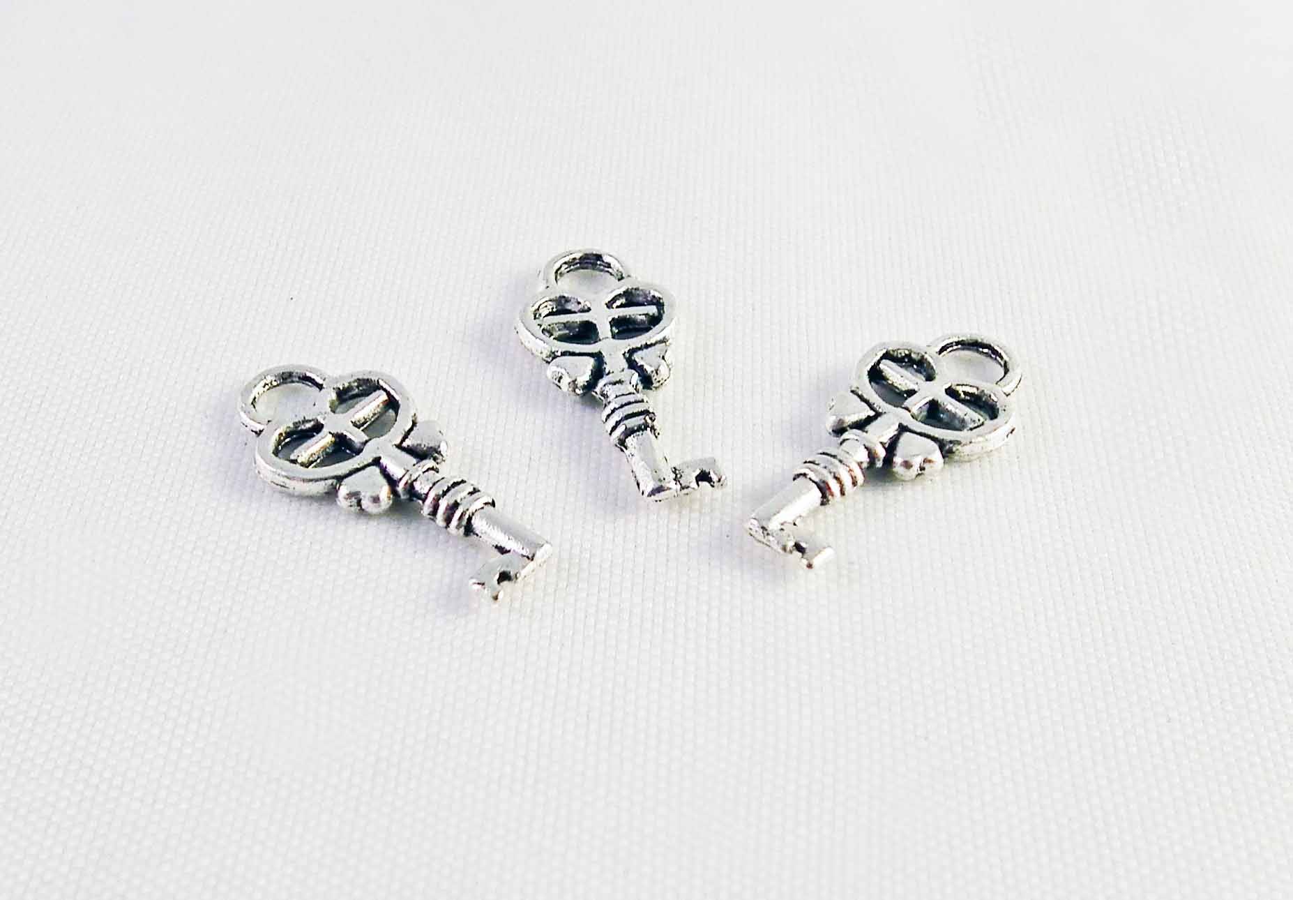 Lot de 3 Breloques Pendentifs Clés Clef de style Celtique Argent Vieilli, 18mm X 8mm.