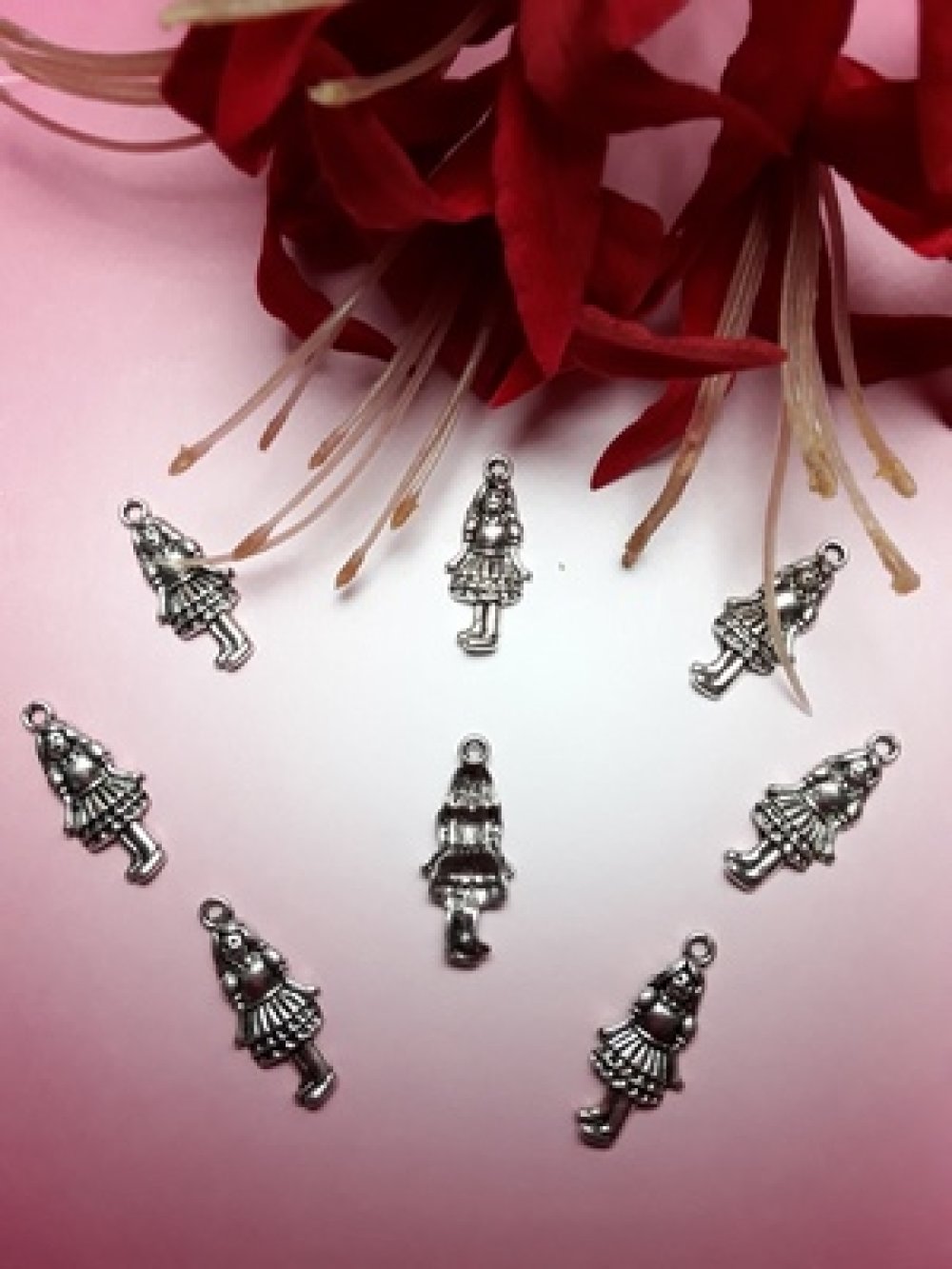 Lot de 3 pendentifs breloques petite fille 26x11mm en jupe et cheveux long argent tibétain