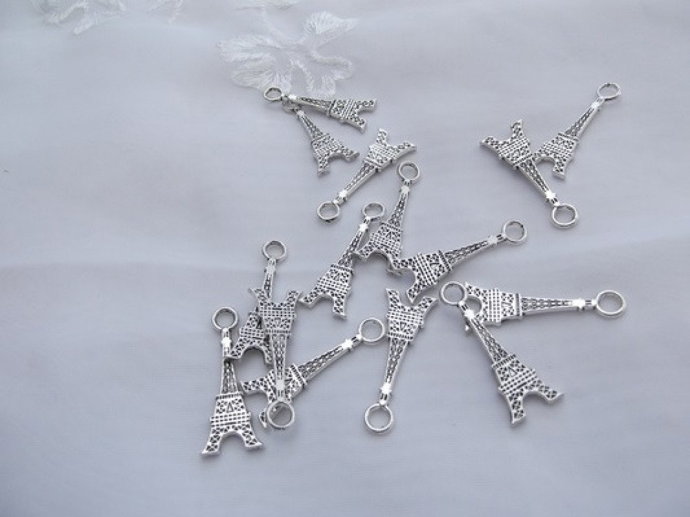 ARTICLE: Lot de 3 Breloques Pendentifs Tour Eiffel Ciselées Recto Verso Argent Tibétain 32x12mm