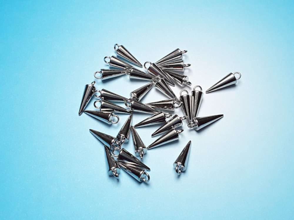 Lot de 3 Cône Goutte Argenté 21.5x6.5mm Plein lourd Acier