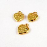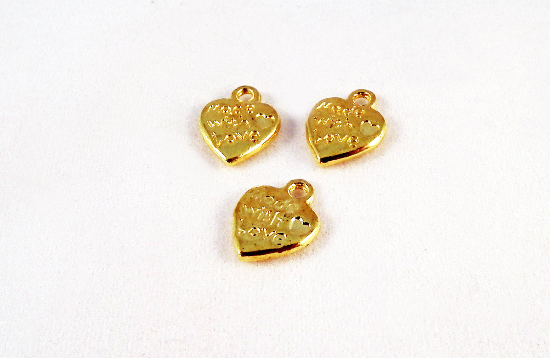 Lot de 3 petites Breloques Pendentifs "Made with Love" de couleur Doré, 10mm X 10mm.