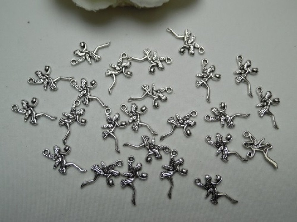 Lot de 4 Breloques Elfe Fée avec petit Coeur dans la main 23x13mm Argent Tibétain